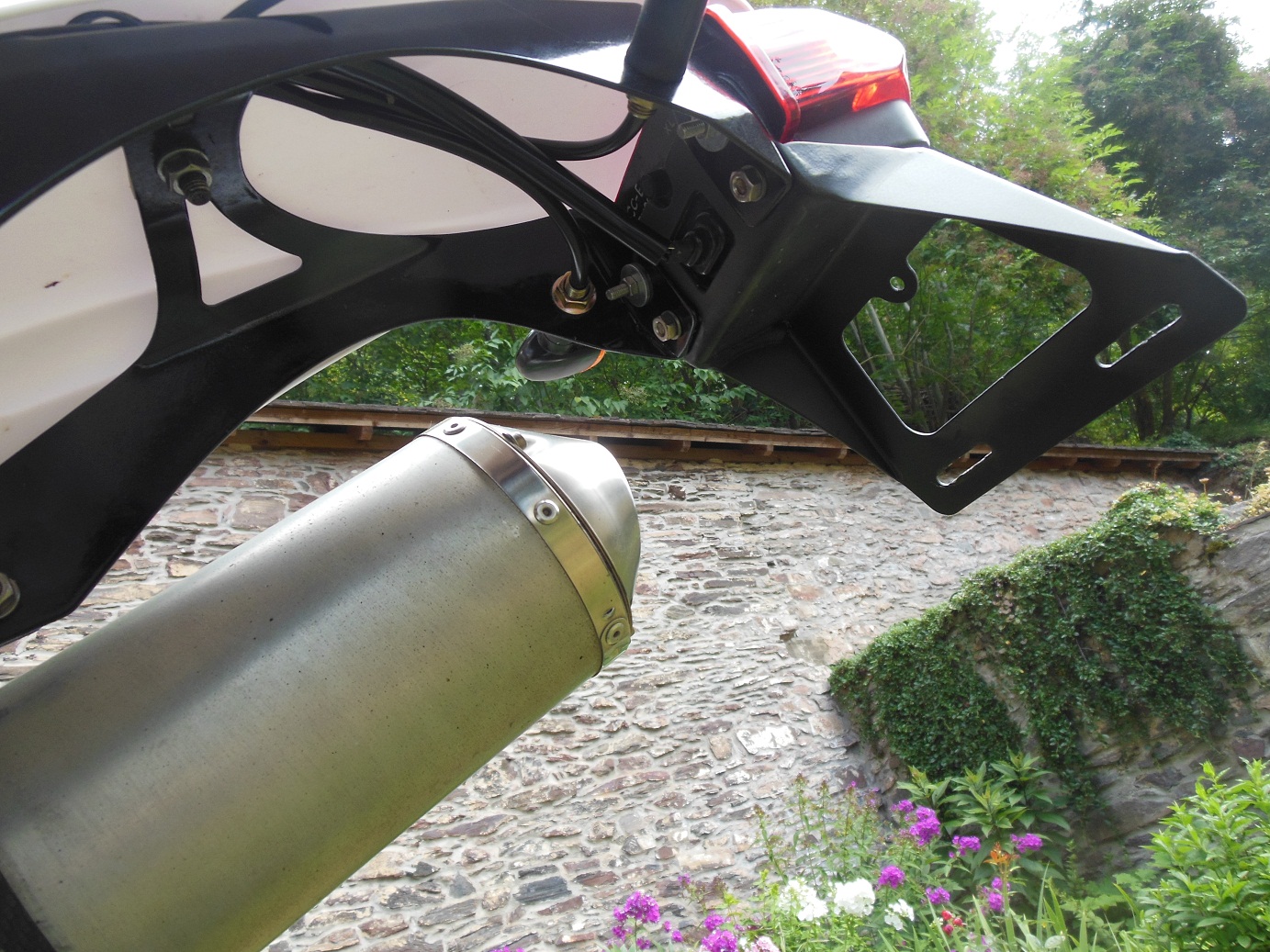 PS: Wer noch Daten zu dem Heckrahmen braucht, nur zu. Ich kann bei Bedarf eine DXF Datei zum ausschneiden schicken. Oder auch das Teil fertig ausgeschnitten zum selber kanten liefern. Der Heckrahmen besteht aus zwei Teilen (Hauptrahmen+Nummernschildhalter), welche verschraubt sind. Kein Schweißen nötig. Das Rücklicht ist übrigends von einer Honda CBR 600.
