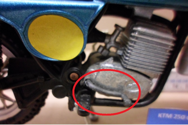 Leider fehlten bei der Suzuki die Einsätze für Tacho und Drehzahlmesser, sowie der Kickstarter, bei der KTM der Fußbremshebel. :(