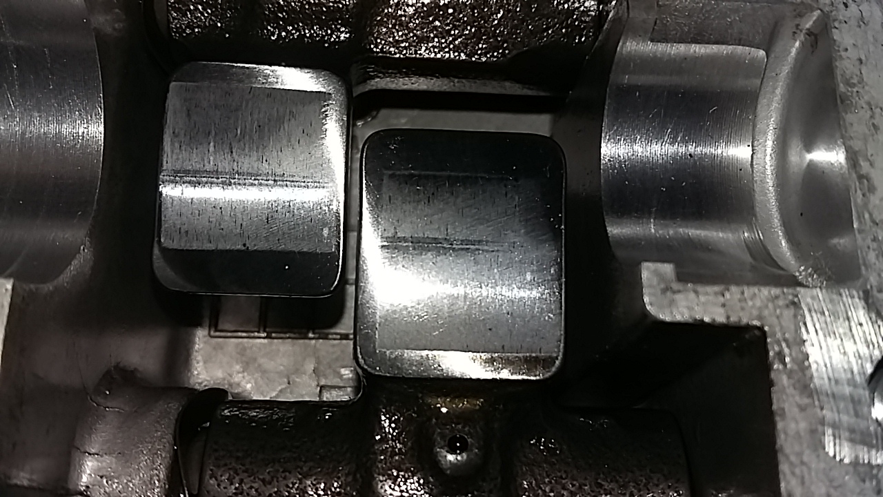 Schau mal auf die Absätze, die ich mit Pfeilen markiert habe, und auf die andersfarbigen Flächen, wo die Kipphebel auf der Nockenwelle aufliegen. Das gehört da nicht hin, die Kipphebel muessen dort homogen rund sein.EifelRider99 hat geschrieben: ↑20.07.2019 11:51@glenn-dandy woran erkennst du die eingelaufenen Kipphebel?