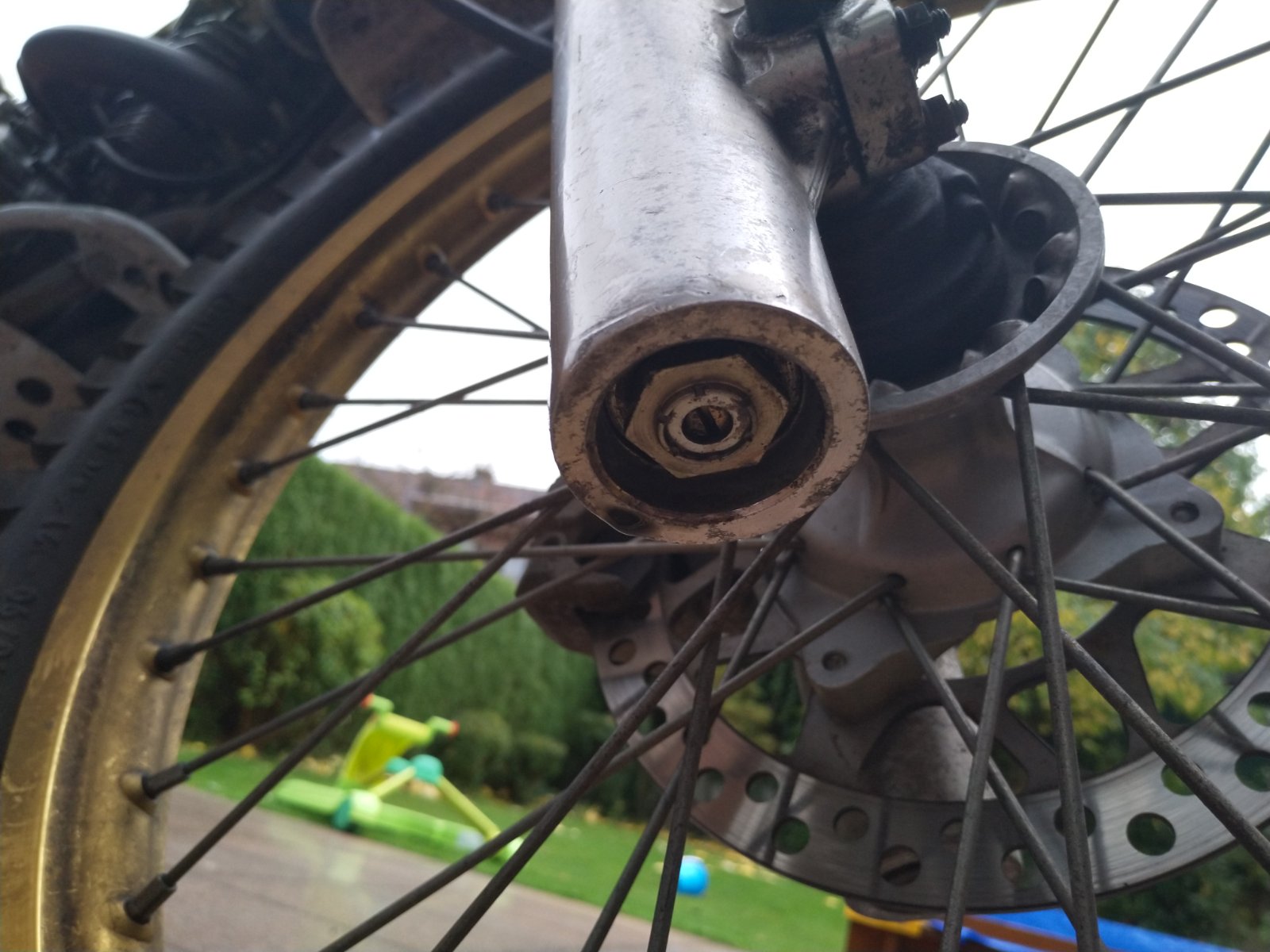 Wo ich zustimme ist, dass die leckende Gabel repariert gehört: Tropfendes Öl ist nicht nur eine Umweltsauerei, aber auch eine Gefahr für die Sicherheit: Auf der Bremsscheibe kann das unschön ausgehen.