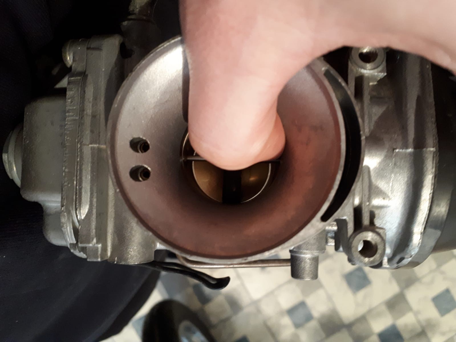 Und ein Bild vom Spalt an der Drosselklappe. Bin mir halt unsicher, ob die nicht eigtl komplett zu/spaltfrei sein muss.