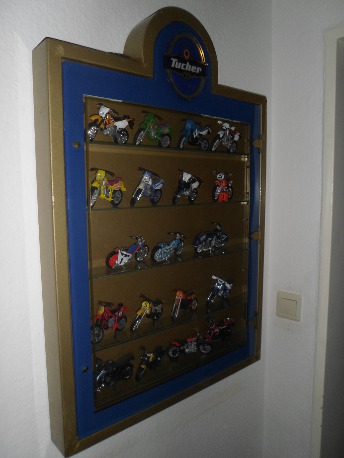 Heute war die Tucher-Vitrine "Schwerpunkt". War 3 Stunden lang unterwegs um das Material und passende Schlösser aufzutreiben - bis auf die Schlösser hab ich alles bekommen. :( Die Schlösser muß ich wohl im Netz suchen - in der Hoffnung passende zu bekommen. Die Brauerei habe ich angeschrieben, in der Hoffnung die nennen mir den Hersteller der Vitrine. Eventuell gibt es den noch - und ich bekomme von dort Ersatzschlösser.