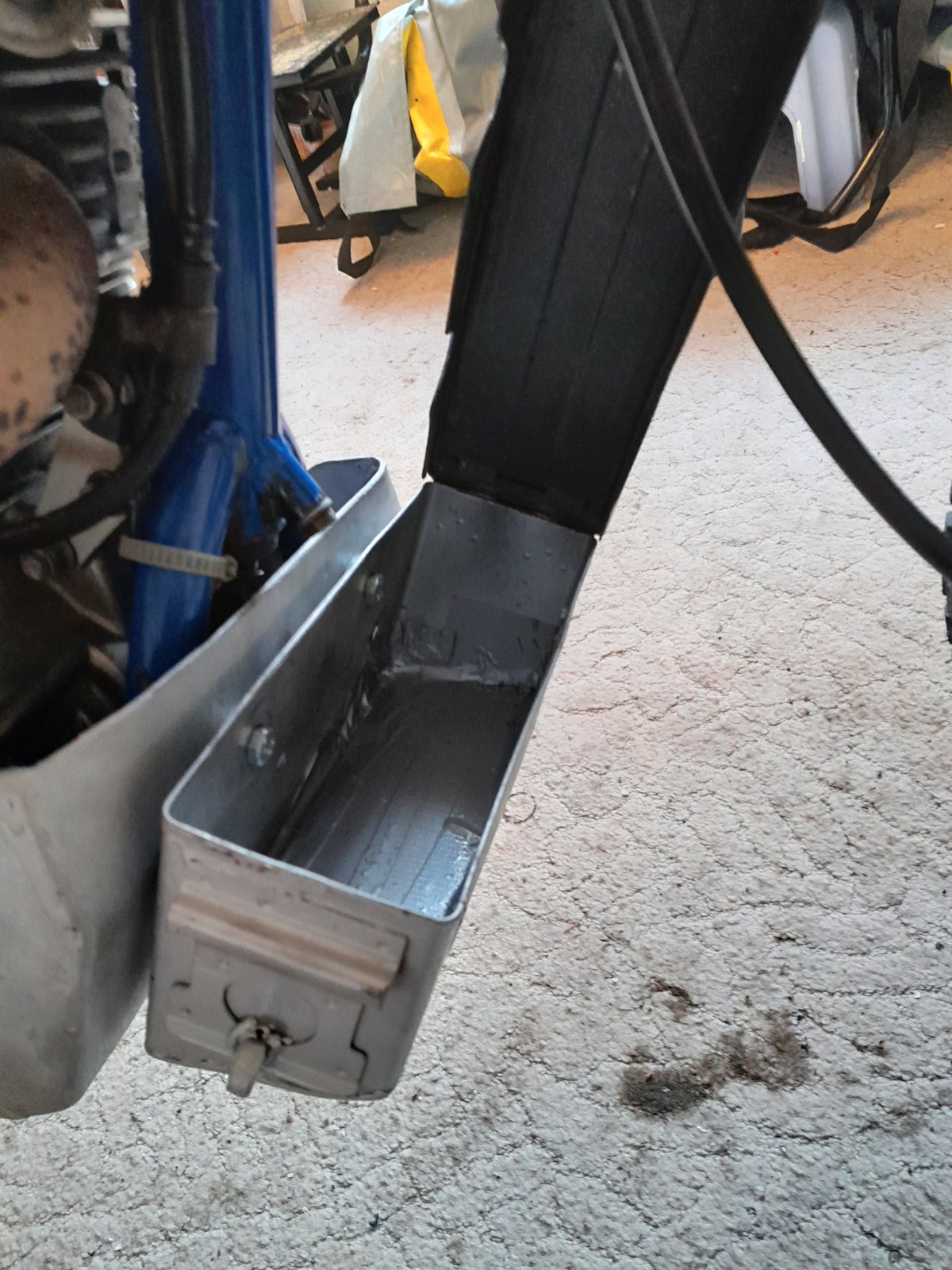 Um die Box auch verschließen zu können wurde eine M10er Mutter angeschweißt. Ob da ein Schloß dran kommt weiß ich noch nicht; ich bin nicht sooo der ängstlich.