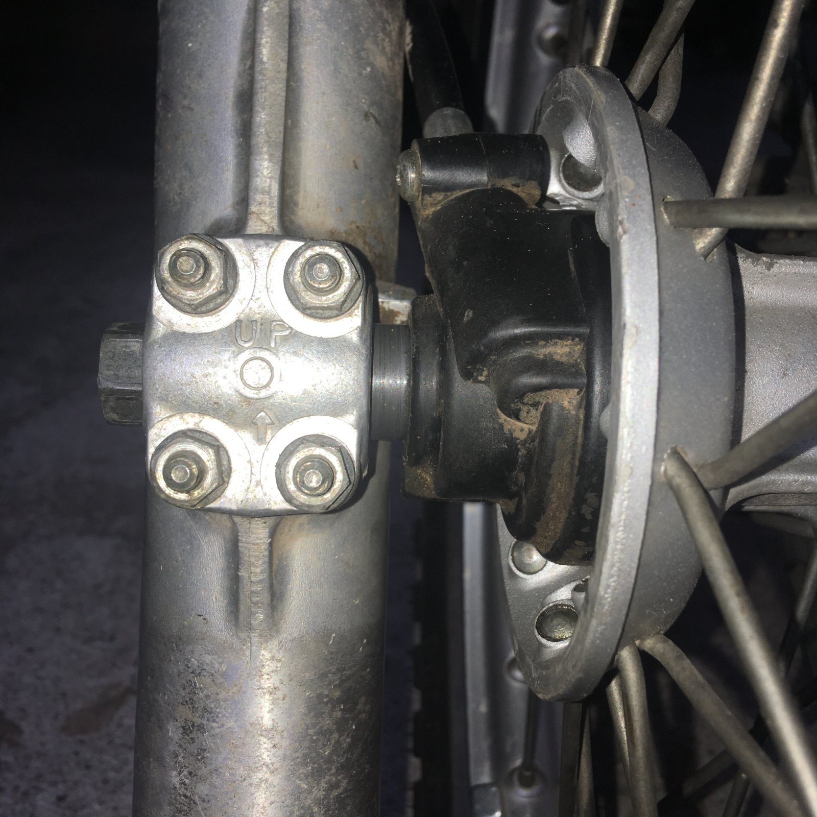 ich habe mir einen neuen Radsatz für die DR besorgt. Anschließend alle Lager erneuert. Nun habe ich das neu gelagerte Vorderrad montiert und bin mir etwas unsicher ob die Abstände auf der Achse so normal sind. Es betrifft den Spalt zwischen dem Gehäuse der Tachoschnecke und der Klemmung am Gabel-Tauchrohr. Habe ein Bild beigefügt. Sieht das bei euch auch so aus?