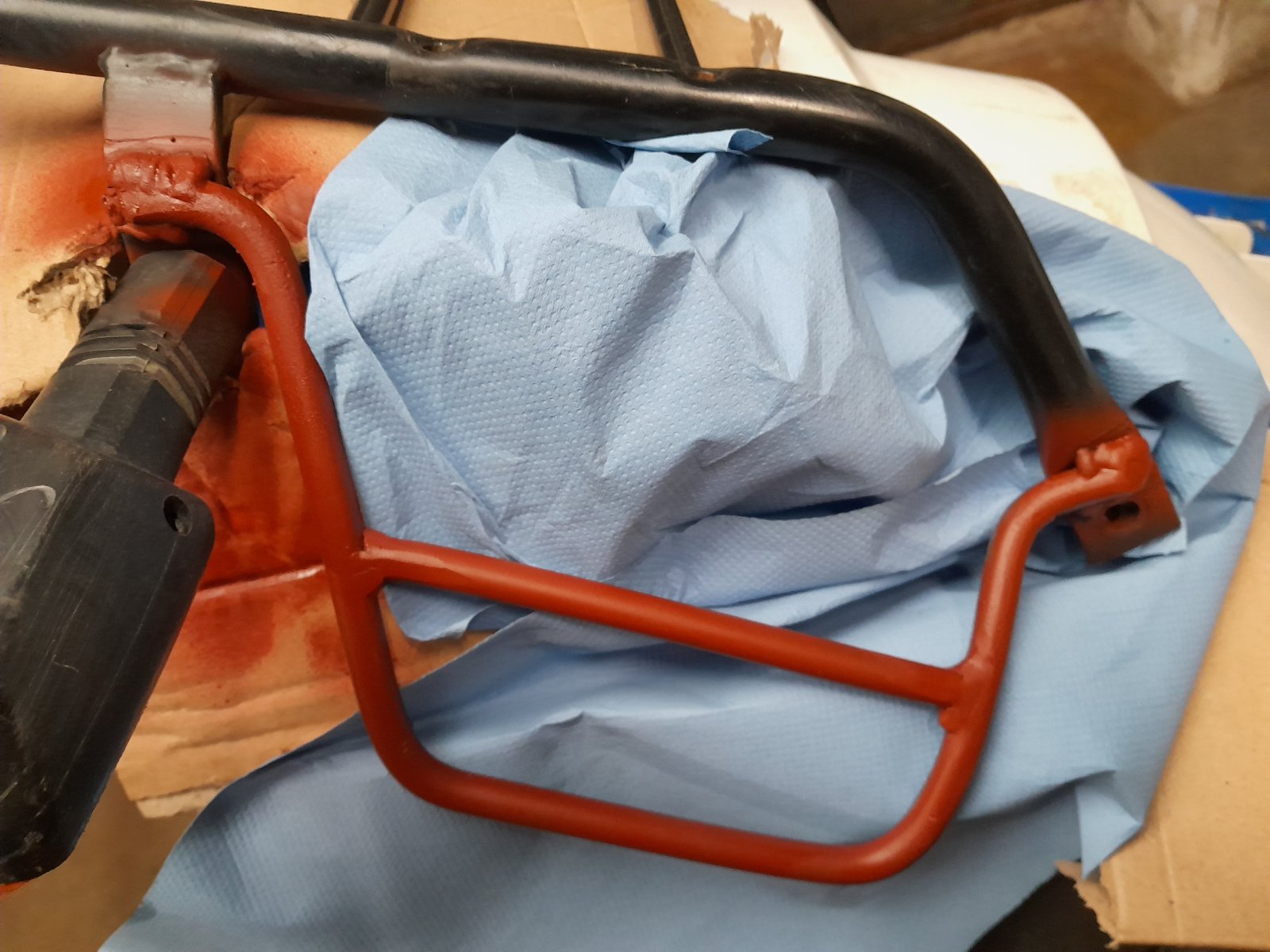 Ich habe die Taschen recht weit vorne sitzen. Sie liegen durch die Abspannung oben, vorne und hinten ohne großen Druck auf den Seitendeckeln auf. Falls Mal was verrutscht, habe ich mir aus Aluprofil was noch rumlag, Schraubschelle und hitzefester mehrweg Grillmatte einen Schutz an den Gpr geklemmt. Funktioniert gut.