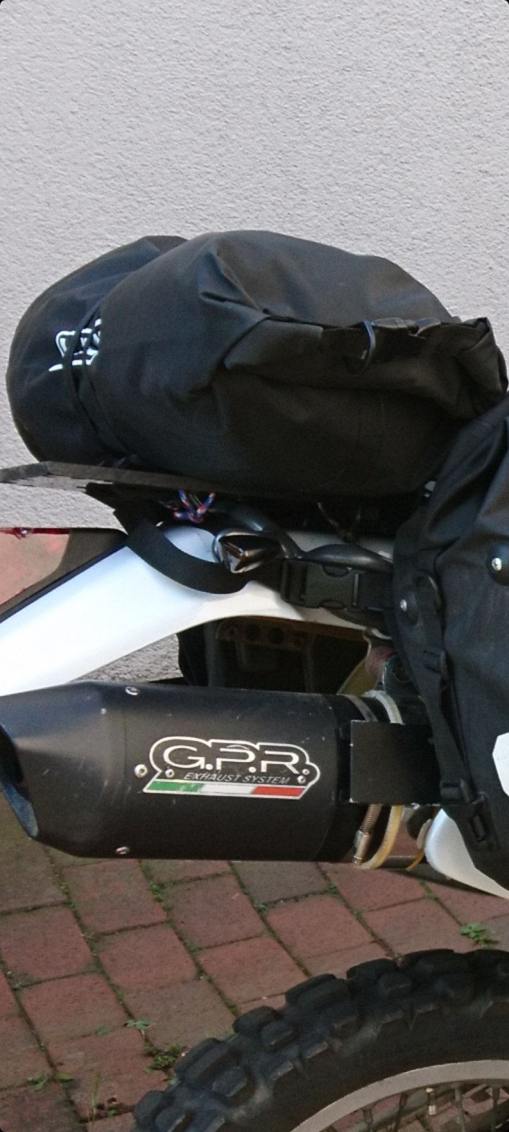 einen Tankrucksack kann ich zwar nicht empfehlen, aber als Packtaschen nutze ich ein paar alte von Ortlieb. Glaube heute laufen die bei touratech unter anderem Namen. Glaube heißen Endurance. Die eher waagerechte Form ist gut wenn man eine Kicker fährt. Bei einer se gehen auch die von enduristan. Sind aber etwas teuer.