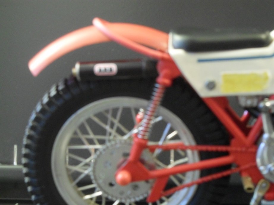 Das Logo und der Aufkleber "Trial Team" sind einfache Papierausdrucke, die zuerst mit Tesafilm überklebt, und dann unter der Lupenlampe mit einer Nagelschere ausgeschnitten wurden. Ein "mehr an Qualität" geben meine Möglichkeiten nicht her.