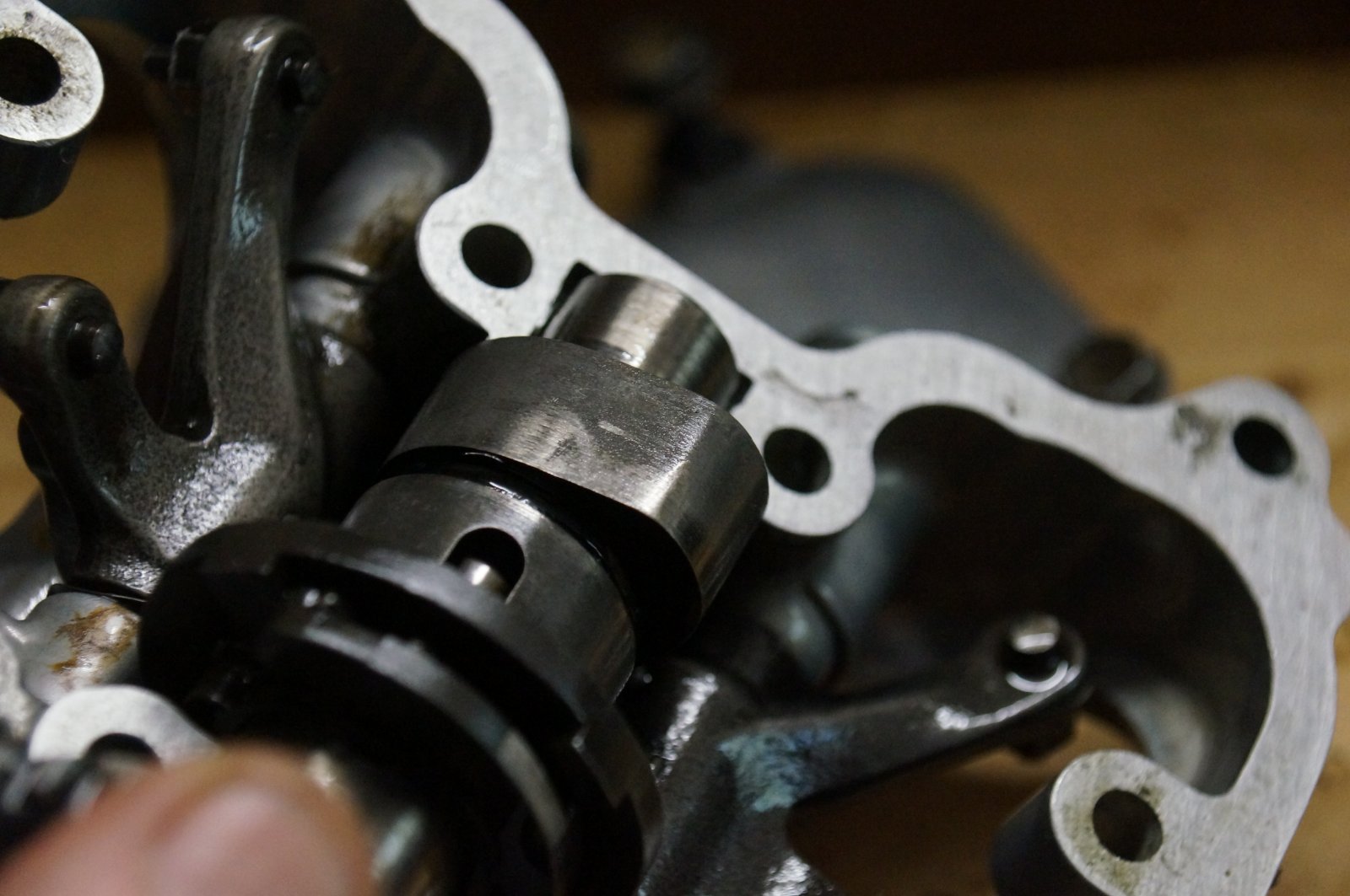 Also ist entweder der Kipphebel krumm oder schief geschliffen oder der Nocken. Dass die Kipphebelachse auf einmal schief ist, halte ich für ausgeschlossen.