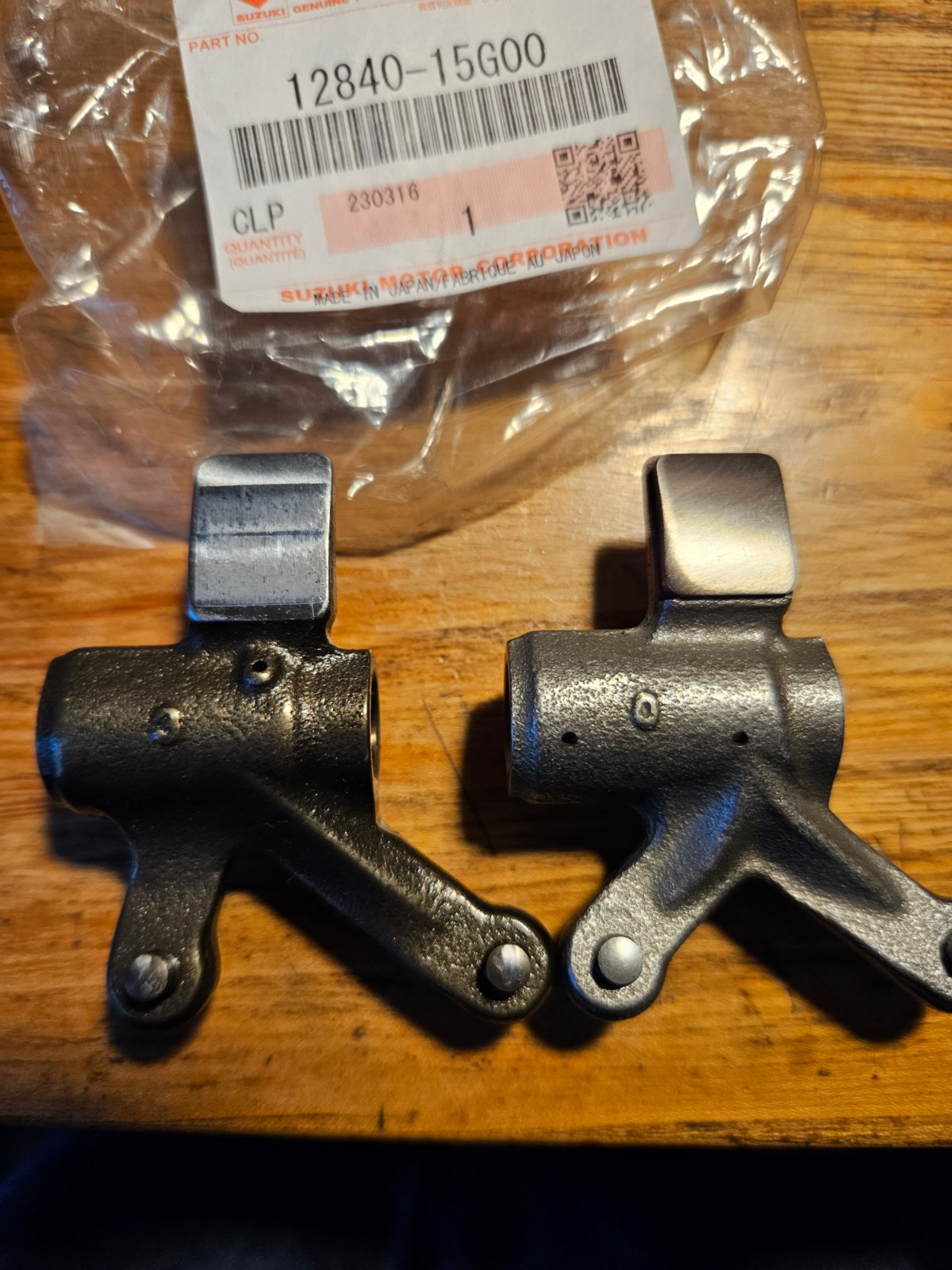 Mal ne Frage ich habe ja zwei neue Kipphebel bei Suzuki gekauft, der Einlass sieht irgentwie etwas anders aus, als ob da was aufgeklebt ist