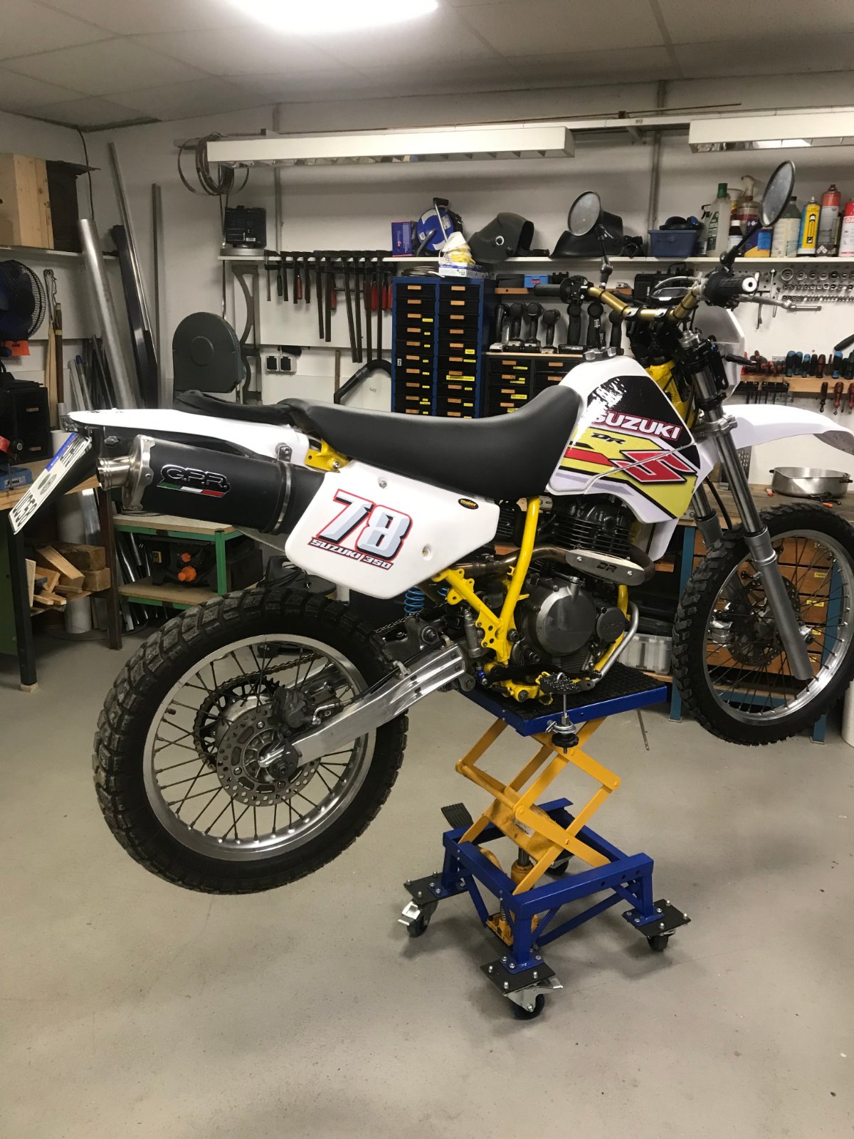 Was soll ich denn z.B. mit einem ABS anfangen? Wer so etwas ernsthaft zu benötigen glaubt, der trägt auch einen Fahrradhelm und eine gelbe Warnweste, wenn er durch den Wald radelt. Und es gibt solche Zeitgenossen tatsächlich, habe Sie live dieses Jahr im Wald schon beobachten können. Eine CRF300L z.B. hat dazu noch ein völlig unbrauchbares Fahrwerk, Wasserkühlung, ein höheres Gewicht und extrem hohe Drehzahlen! Sprich- ein mit der DR350 vergleichbares Motorrad bietet der "Markt" zur Zeit nicht einmal ansatzweise an.