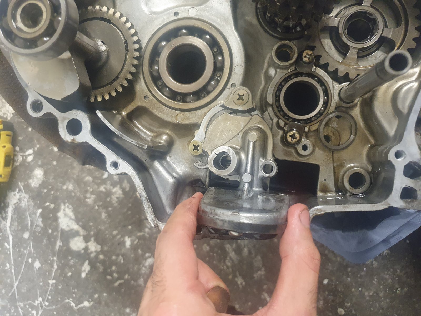 Die anderen beiden Fotos zeigen das gebrochene Ölpumpengehäuse. Da kommt man erst ran, nachdem man den Motor gespalten hat...