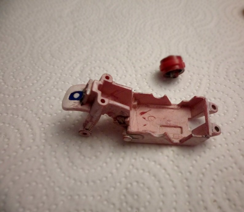 Der Unterbau des blauen hingegen kam zunächst in ein Entlackungsbad. Leider ging dabei ordentlich was schief - ob wohl ein Test zuvor sehr gute Ergebnisse erzielte - waren die 1 Min. 30 Sekunden im Vollbad des Entlackers wohl zuviel für den fast 40 Jahre alten Kunststoff