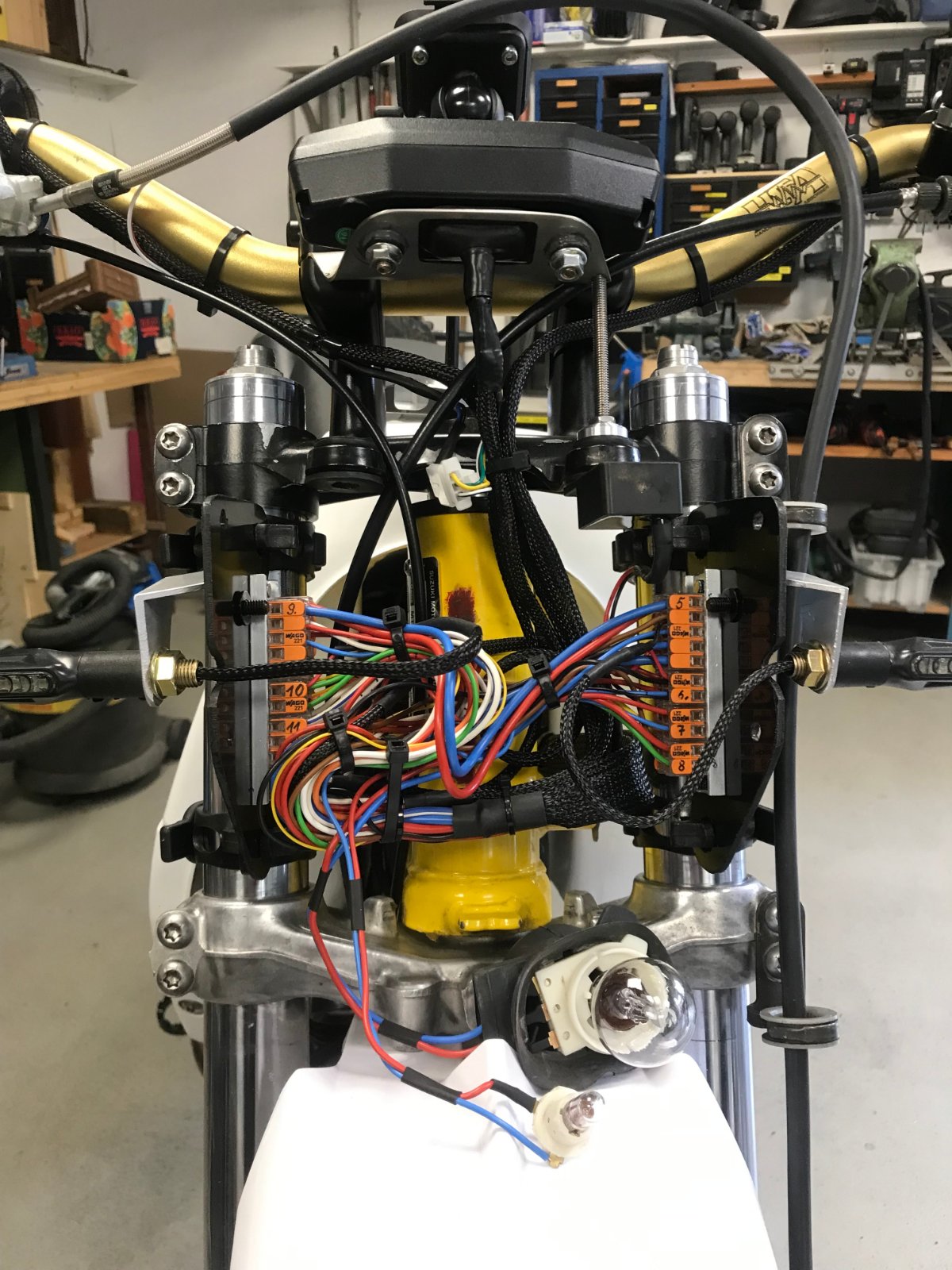 Nach Aufhübschung von Rädern und Motor, der kompletten Erneuerung des Kabelbaumes (Schaltplanerstellung, den LifePo- Akku verstauen und alles sinnvoll zu verkabeln dauerte locker 3 Wochen), der Adaption von Plastics einer MX RMZ, Rasten und Seitenständerumbau und, und, und... wurden erste Elektrostartversuche unternommen.