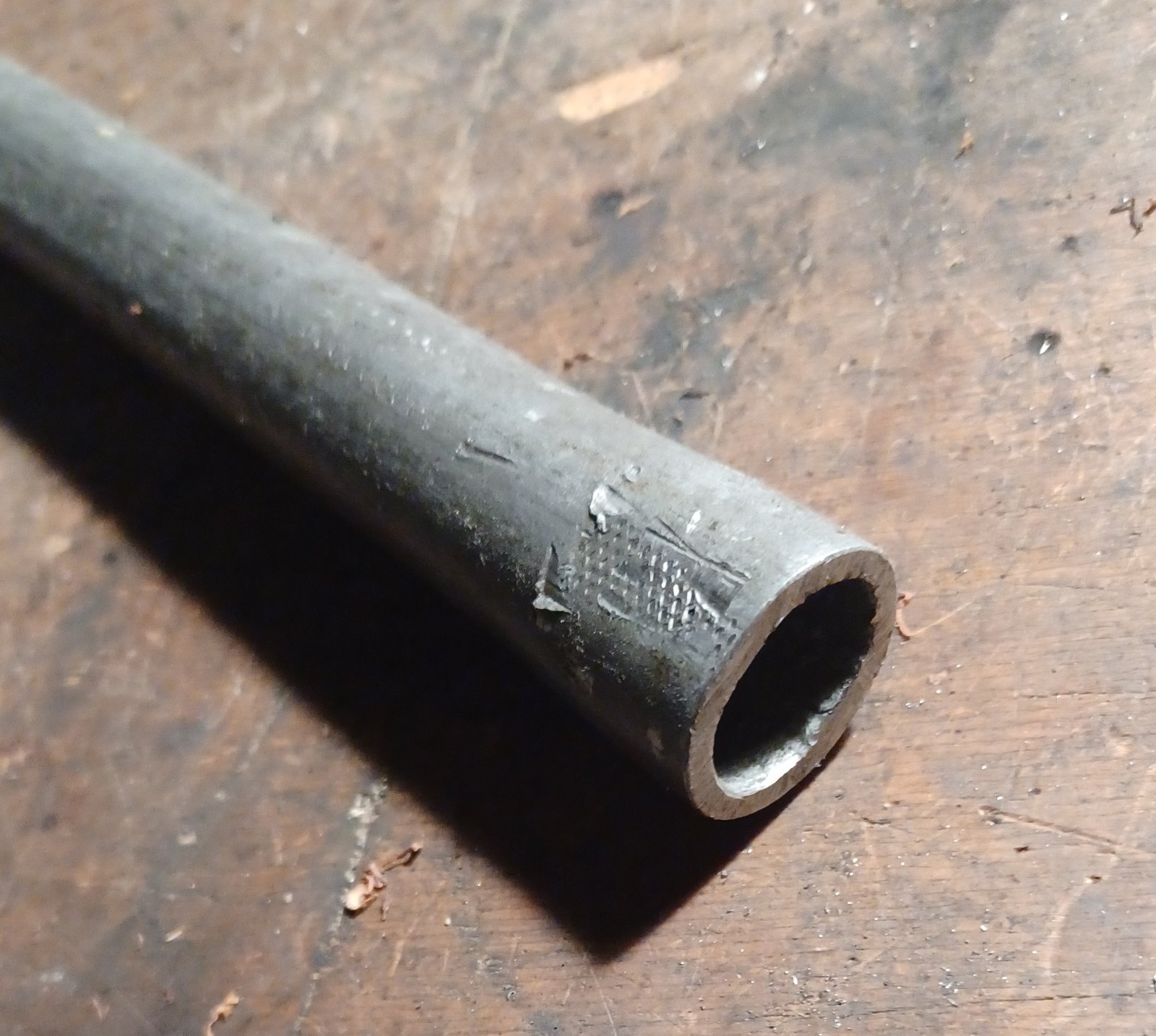 sicher, 21mm Außendurchmesser, 3mm Wandstärke sind es bei mir (was halt da war). Bekommt man noch im Schraubstock gedrückt oder eben mit der dicken Pompfe rustikal plattgehauen.