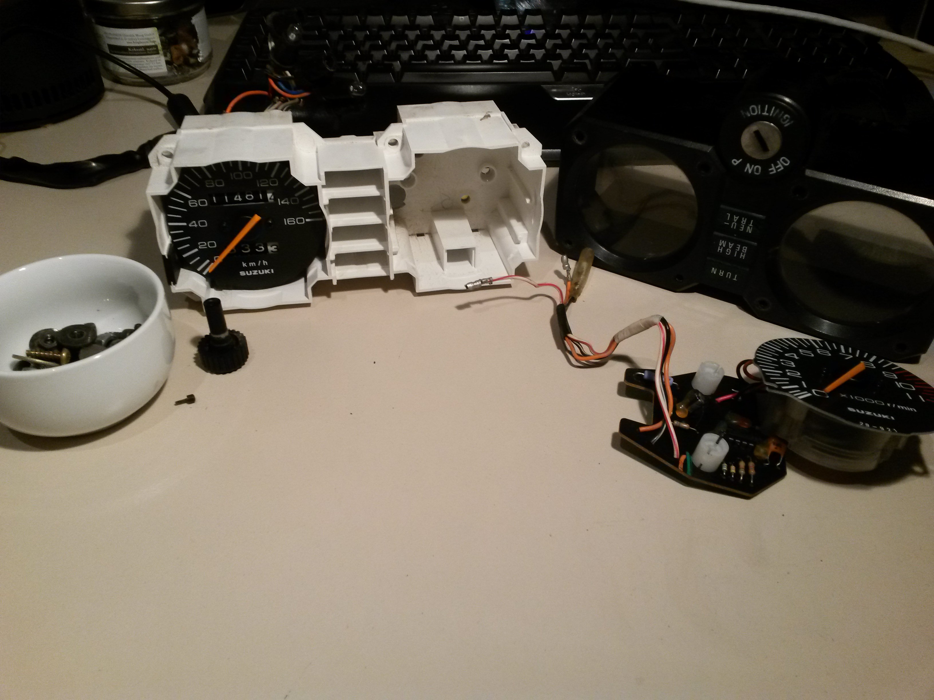 Immerhin hast du den Tageskilometerknopf ausbauen können OHNE das die winzige Schraube sich verabschiedet hat...das ist schon mal viel wert.