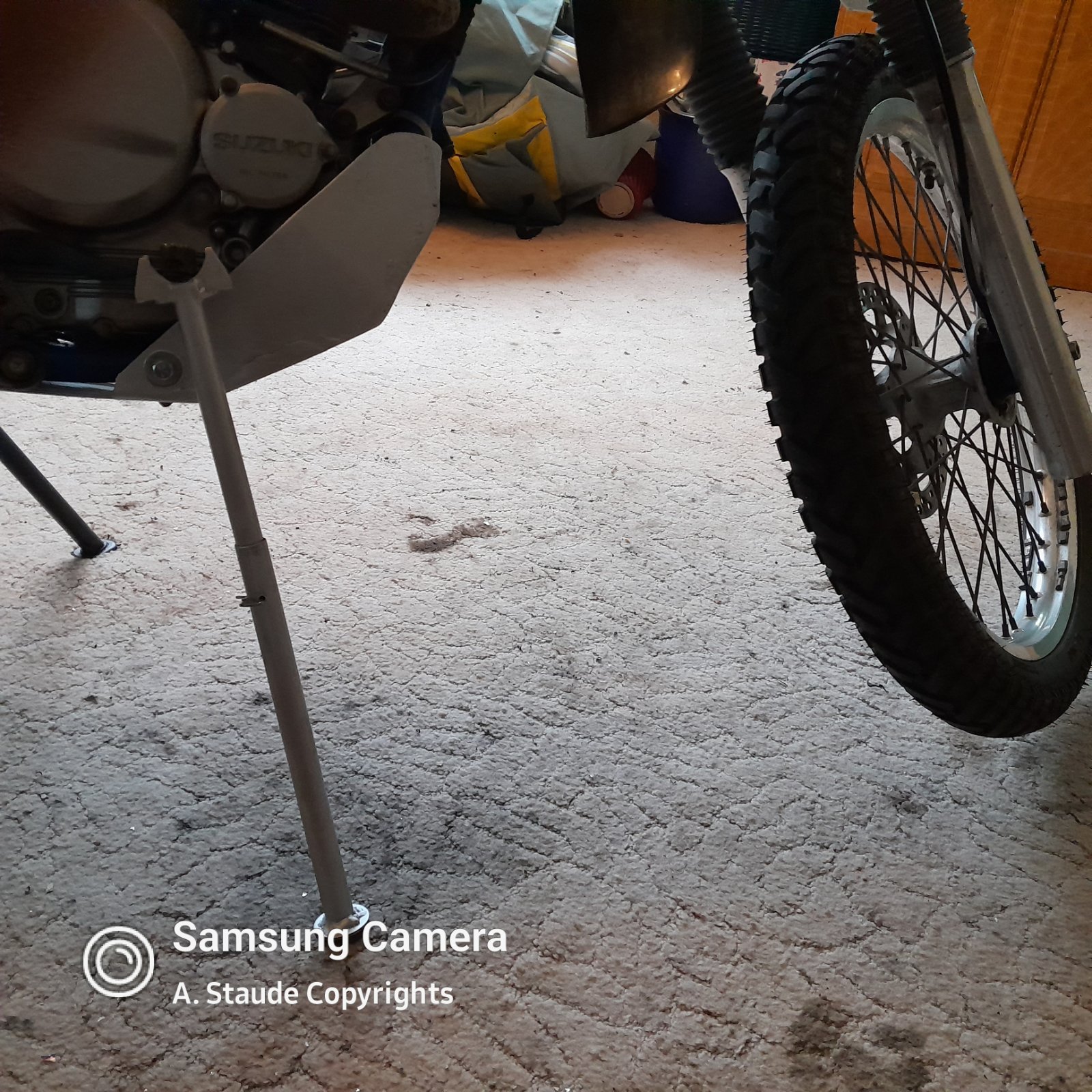 Im Werkzeug ist ein kurzer Spanngurt - der kommt für den Hinterradwechsel in Verbindung mit dem Hilfsständer zum tragen > durch den Gurt wird der Handbremshebel betätigt und verhindert das wegrollen der DR (so ist der Plan).