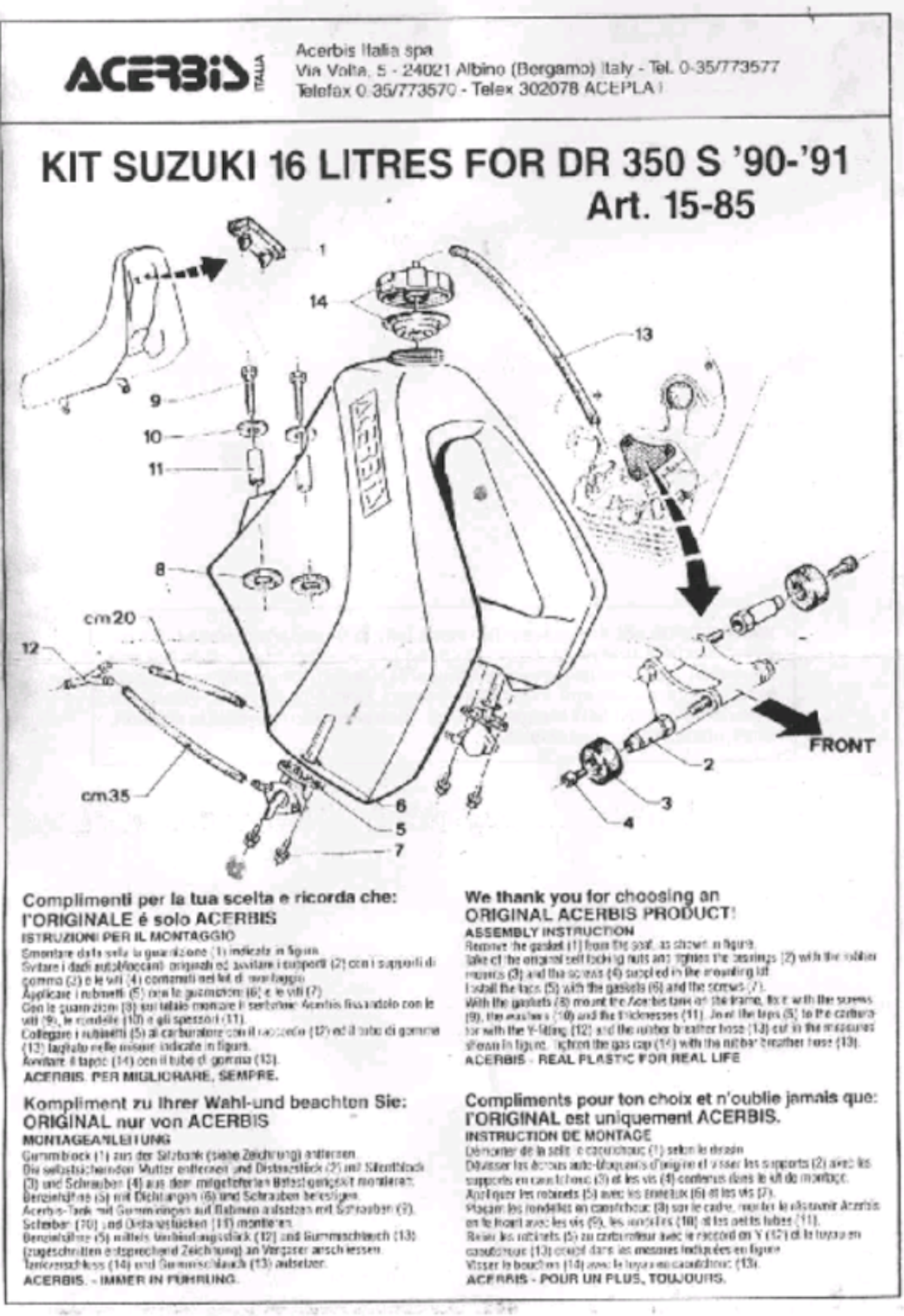 wie ihr dem Betreff entnehmen könnt geht es um meinen 16 Liter Acerbis Tank. In den bisherigen Beiträgen habe ich jedoch nicht das Richtige gefunden. Deshalb das neue Thema.. Mit dem Tank habe ich ein paar Probleme bei der Montage.