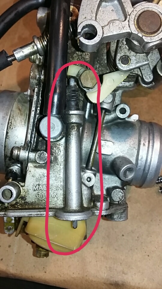 So wie ich es in der Rep. Anleitung gesehen habe ist das der Beschleunigerstift. Allerdings fehlt bei mir die Feder und der Beschleunigerkolben. Also im Vergaserdeckel war davon nichts zu sehen. Das Alustäbchen hängt somit meist durchgehend ganz unten. Kann auch das Ursache für die Symptome sein?