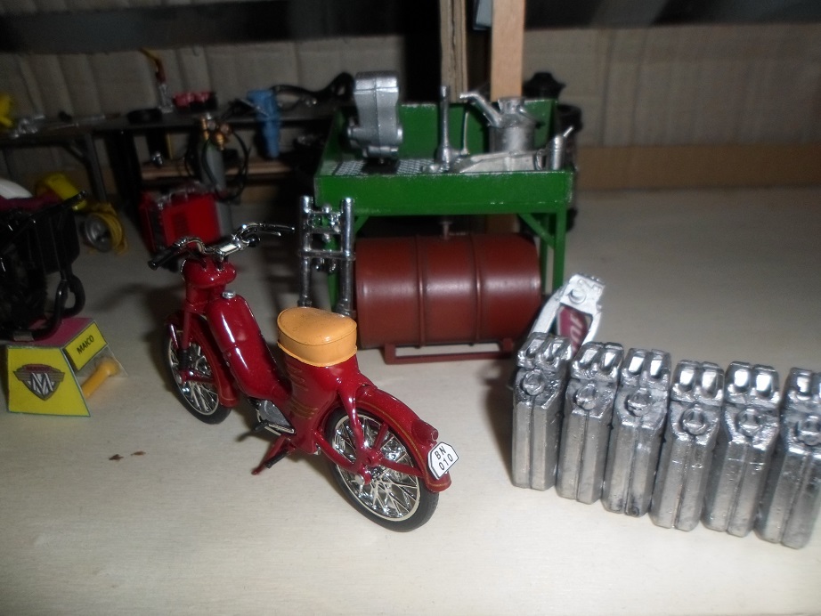 Was noch kommen wird, ist eine kleine, hoffentlich funktionsfähige Hebebühne, gefertigt aus Miniatur-Rifffelblech.....das wird aber noch etwas dauern