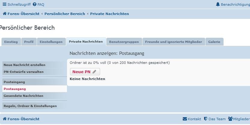 so sieht mein PN-Postfach nach der PN an Dieter aus und ich finde die Test-PN weder in den gesendeten Nachrichten noch im Postausgang.
