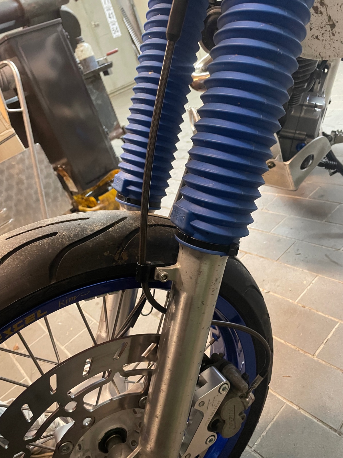 Beißt sich optisch, aber anders herum ist die Führung zum Bremssattel etwas komisch mit der dicken Ummantelung.