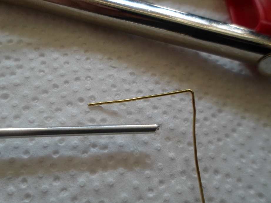 Zuerst ein Stückchen vom 06 mm Messingdraht abwinkeln