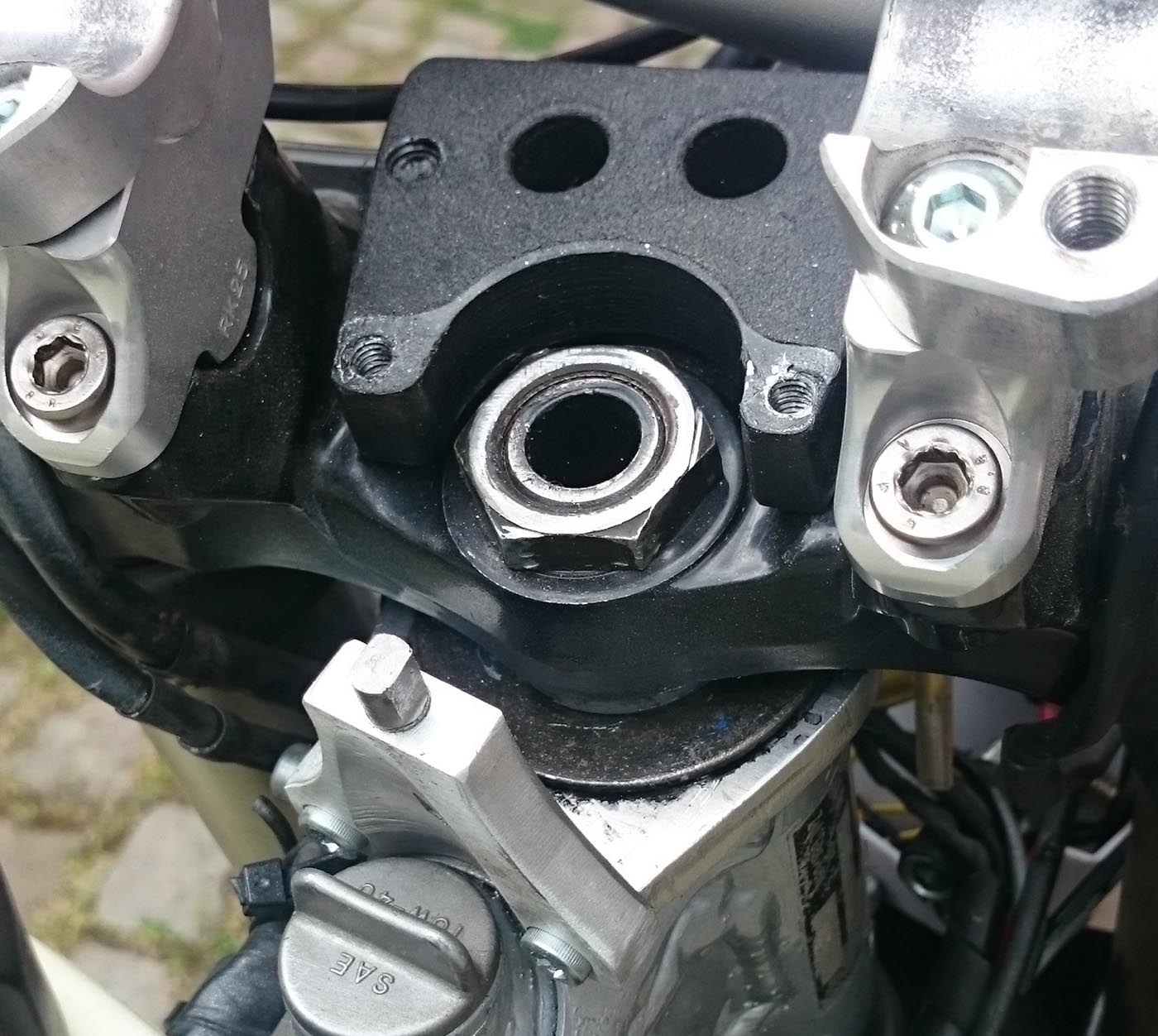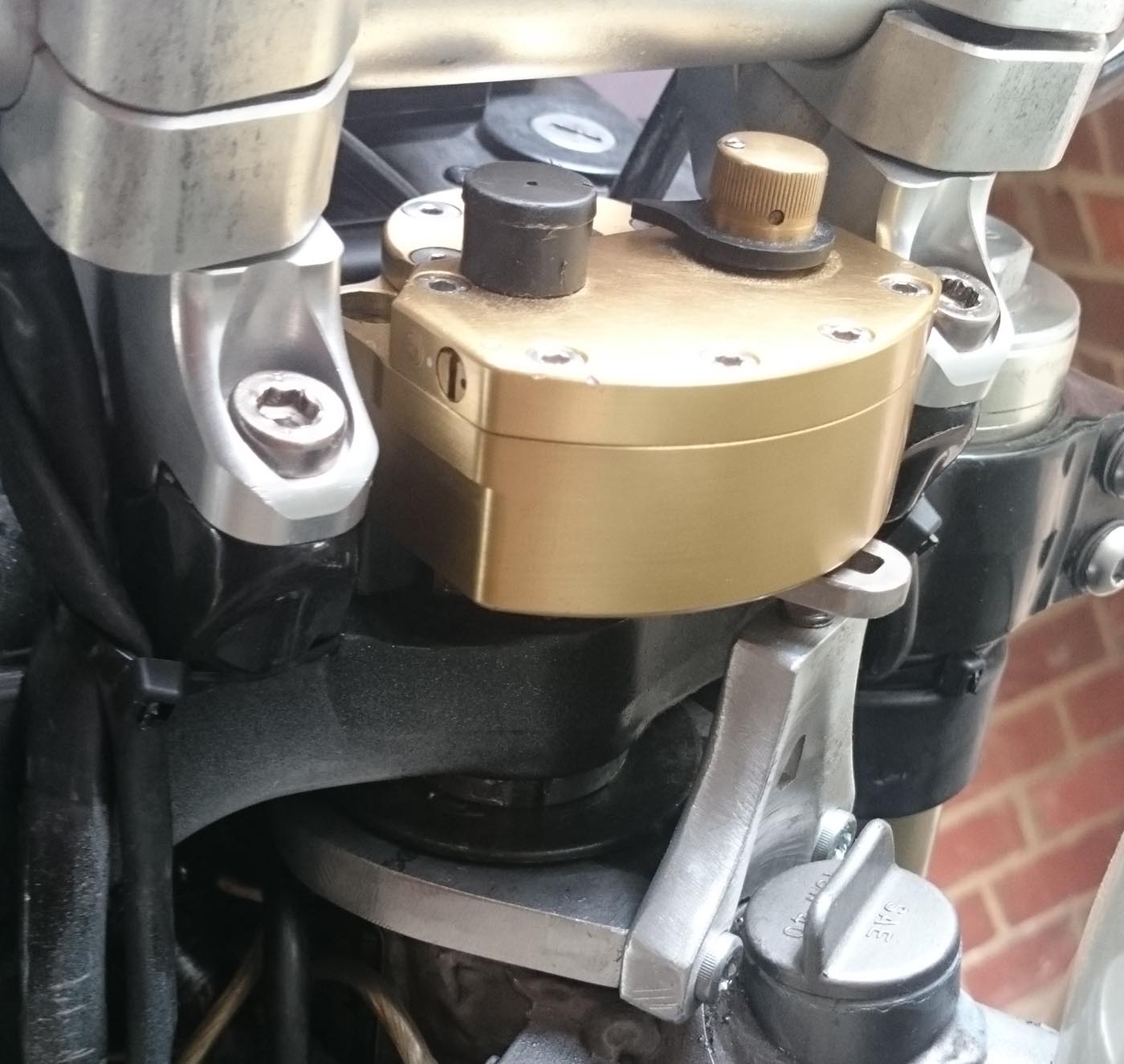 Hier die Bilder von meinem selbstgefeiltem Adapter für den Scotts Steering Stabilizer an der DR 350: