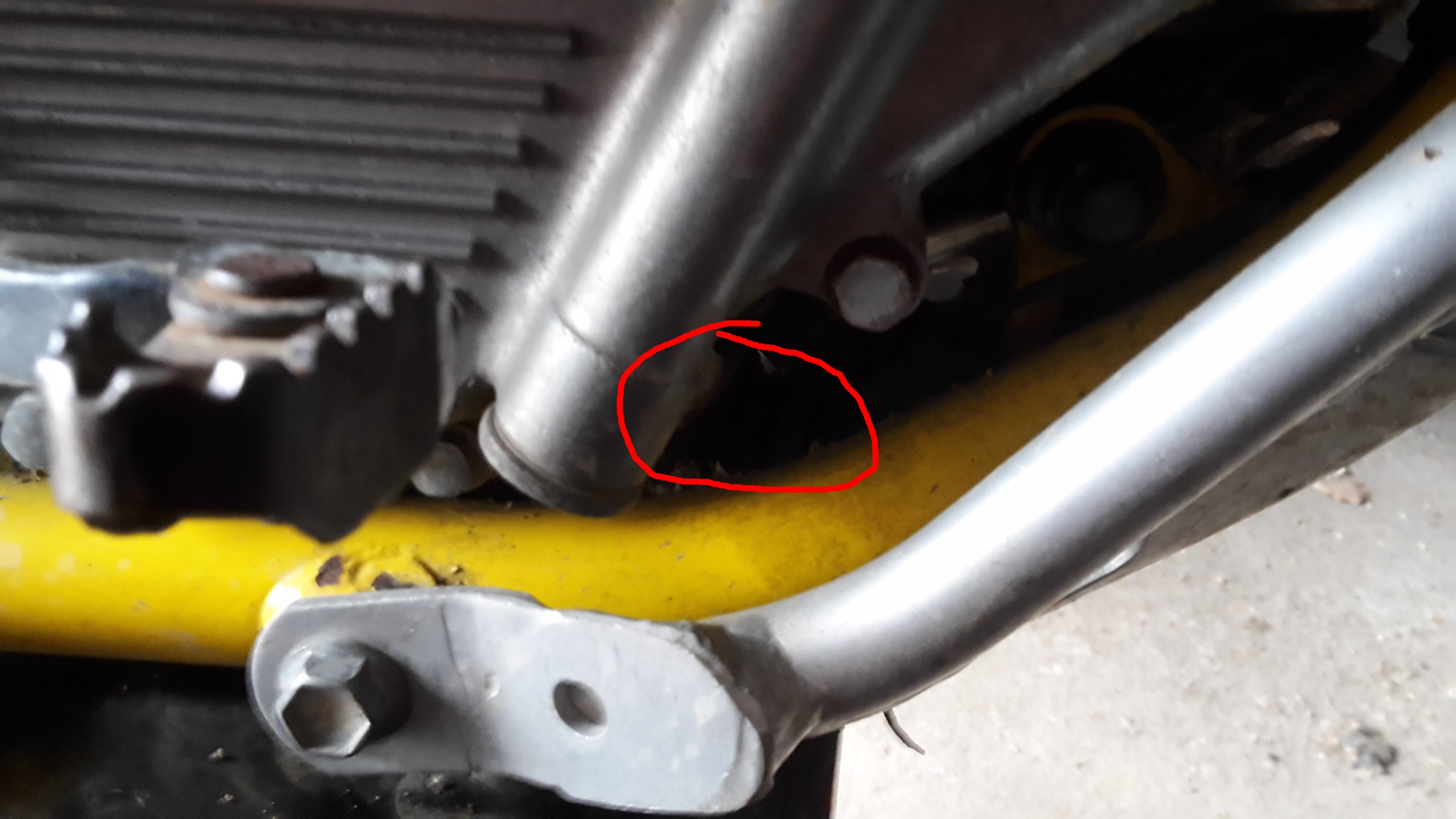 Bei der DR 350 befindet sich der Öldruckanschluß unten am Motor in Fahrtrichtung rechts innen neben den Rahmenrohr.