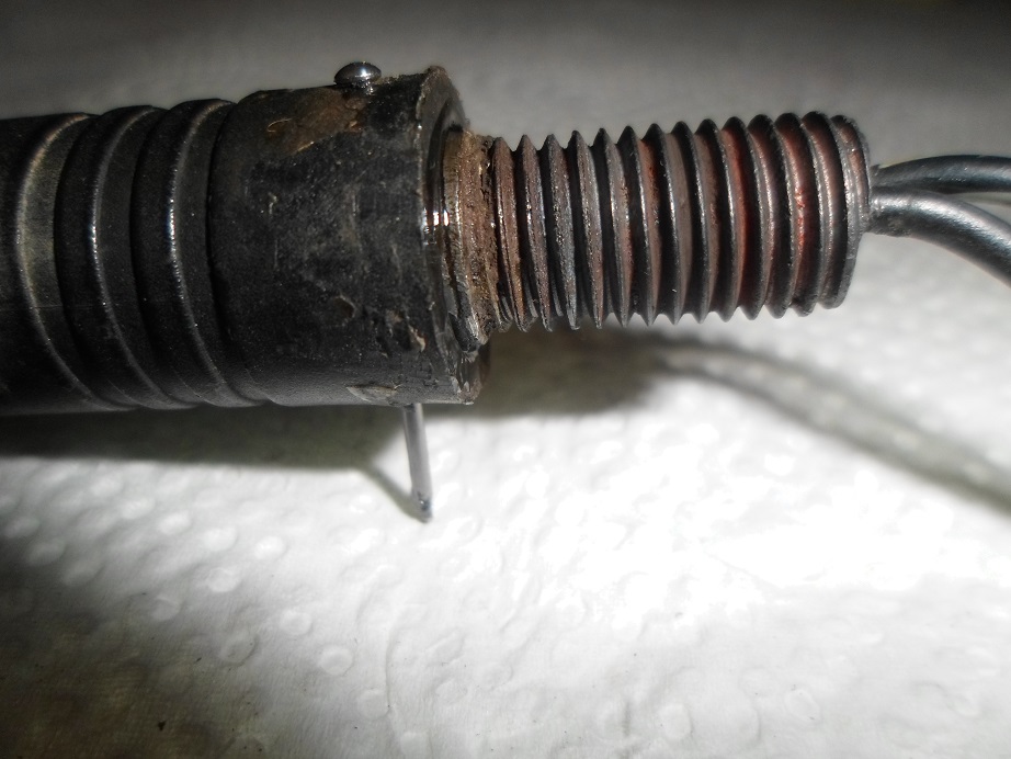 Erforderlich: Kleine Bohrmaschine - ein 25 mm langer Stahlnagel mit mindestens 1 mm Durchmesser / max. aber 1,5 mm, 2 K-Kleber ( nur dann wenn die Gewindebuchse schon aus dem Kunststoffgehäuse raus - und das Gewinde im Kunststoff