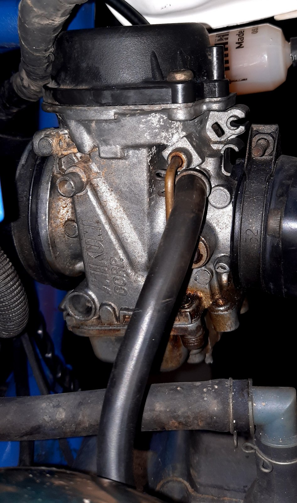 Ich hab dunkel im Hinterkopf (Ist ja mittlerweile über 14 Jahre her....), dass der BST noch einen Schlauch an der Schwimmerkammer hatte, und noch einen an der Seite. Beide wurden nach unten abgeführt. Beide haben sich nach einiger Zeit im Gelände bei mir verabschiedet. Ich hatte sie auch nie ersetzt.