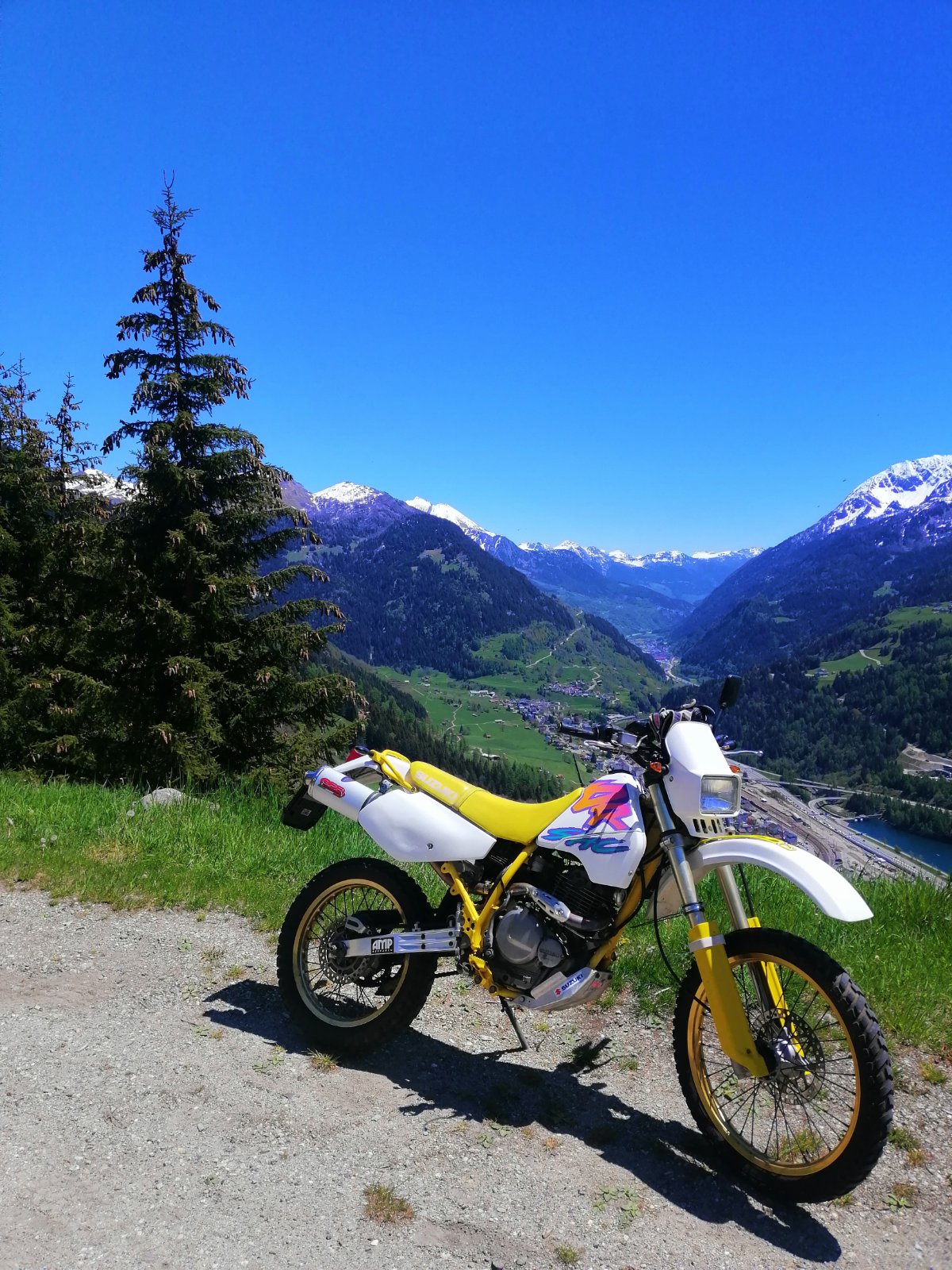 Umbau kommt dan irgend wan nächstes Jahr und bis dahin muss sie halt so mit der 650er mithalten. Motorrad ist übrigens für meine Frau da die kleine DR200S nicht mit der 650 mithalten kann.