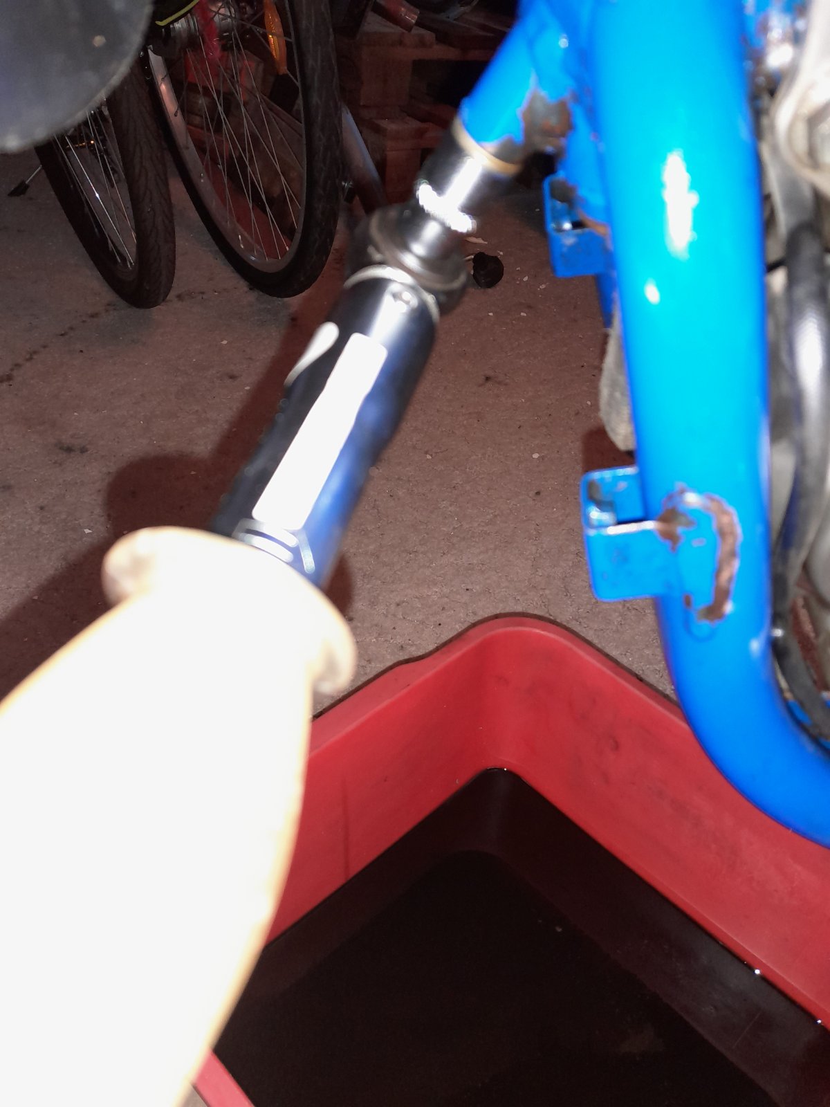 Erst mal alles Öl raus (leider kalt - dauerte halt länger und die DR mußte auch aufrecht zum vollständigen Ablassen hingestellt werden).