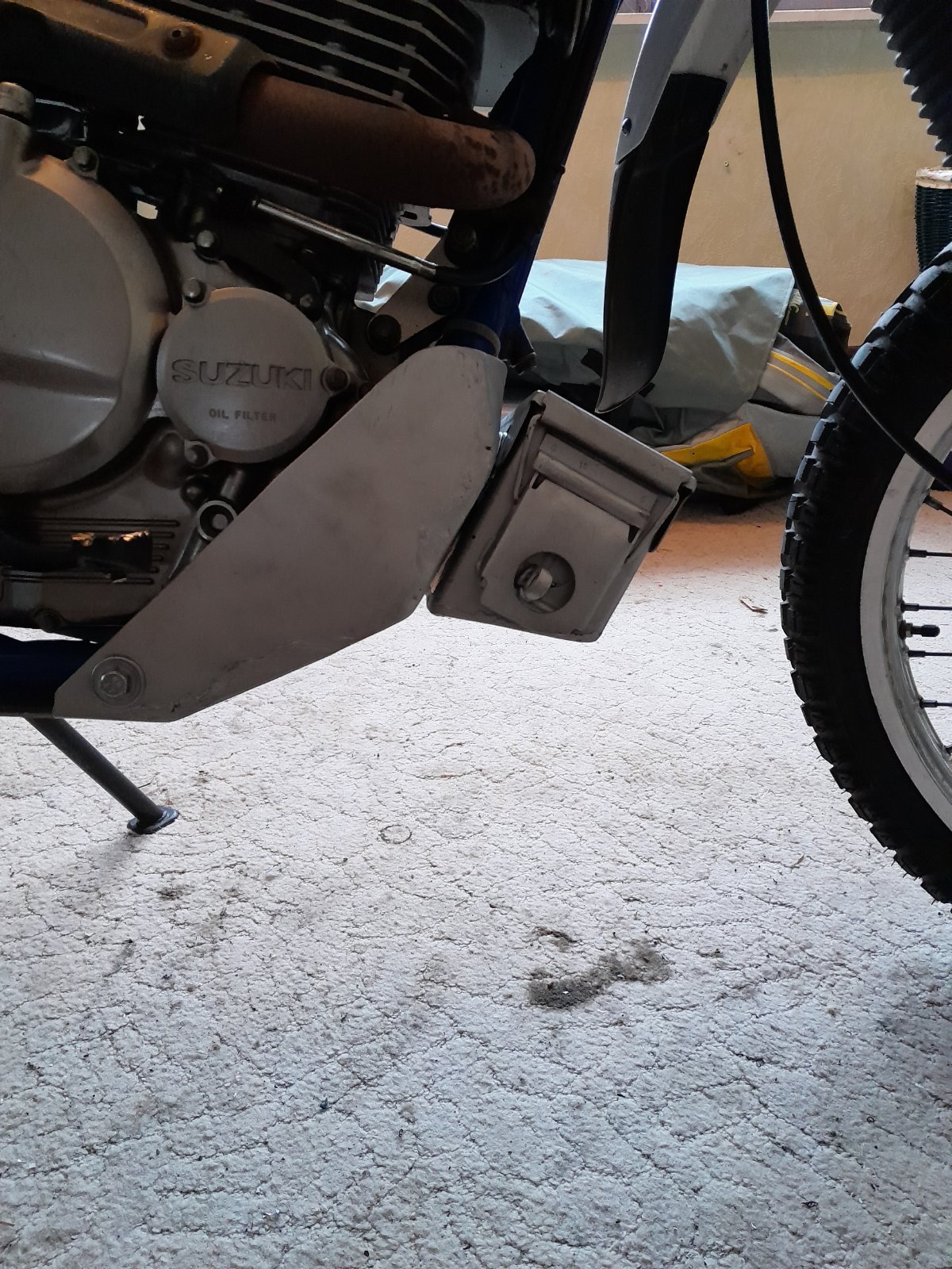 Der Spritzschutzlappen wurde auch gekürzt damit sich nichts Verhaken kann. Die Schutzwirkung vor Steinen etc. der Ölablaßschraube / Rahmen sind immer noch gegeben.