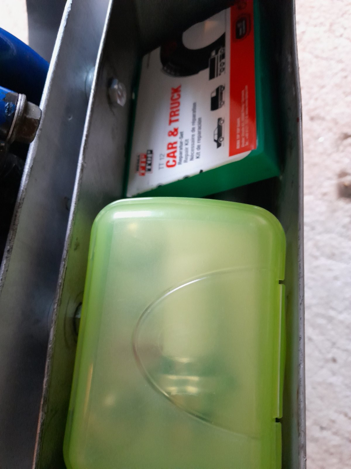 Da ginge noch mehr wenn ich z.B. das Reifenflickzeug in eine flexiblere Tasche sowie das Nippelset in eine Tüte packen würde. Ich habe in der Werkzeugrolle (für die größeren Touren) 2 kleine Reifenmontierhebel zusätzlich drinnen - deshalb habe ich bewußt auf einen zweiten größeren Montierhebl hier verzichtet.