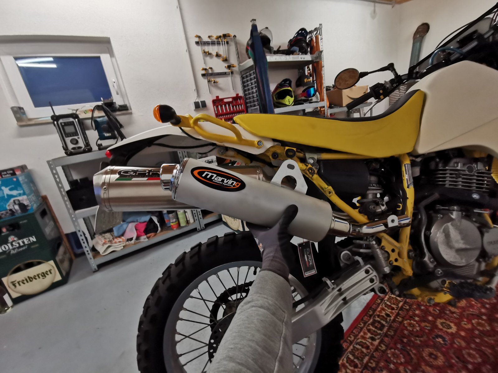 Erste Ausfahrt... Wahnsinn. So muss die Gutste klingen. Sofort Erinnerungen an die drz gehabt. Den kurzen DB Killer mit den Funkensieb verbaut. Finde es dann aber doch etwas zu laut für die Helfer des Staates. Werde mal nen langen killer probieren. Ich bin jedenfalls sehr zufrieden sowohl Sound (Jaaaa ich mache bei Gelegenheit ein Youtube video :rolleyes:) als auch Optik.
