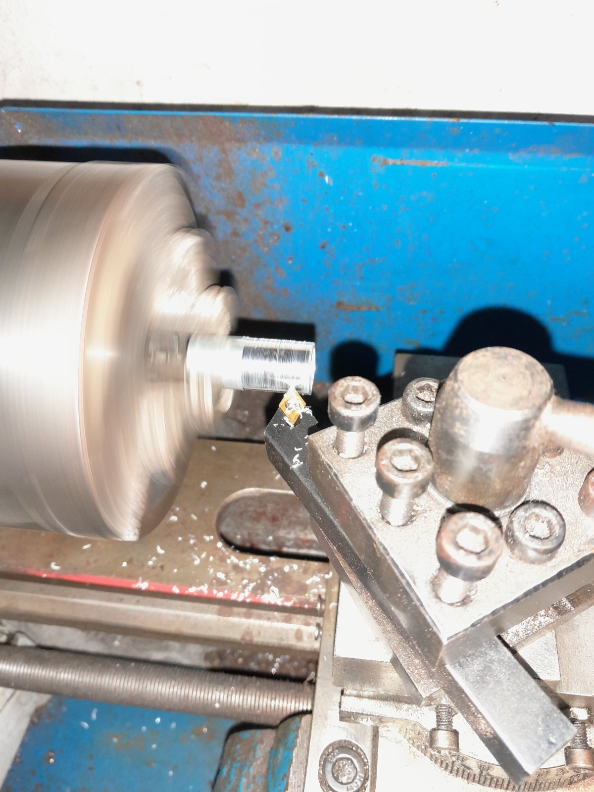Da die Klemmstücke der Handprotektoren für 22mm Stahllenker mit 2mm Wandung gebaut waren passten diese nicht mehr in den Alu-Lenker, da dieser einen Wandung von 4mm hat. Also mußte die Drehe ran...