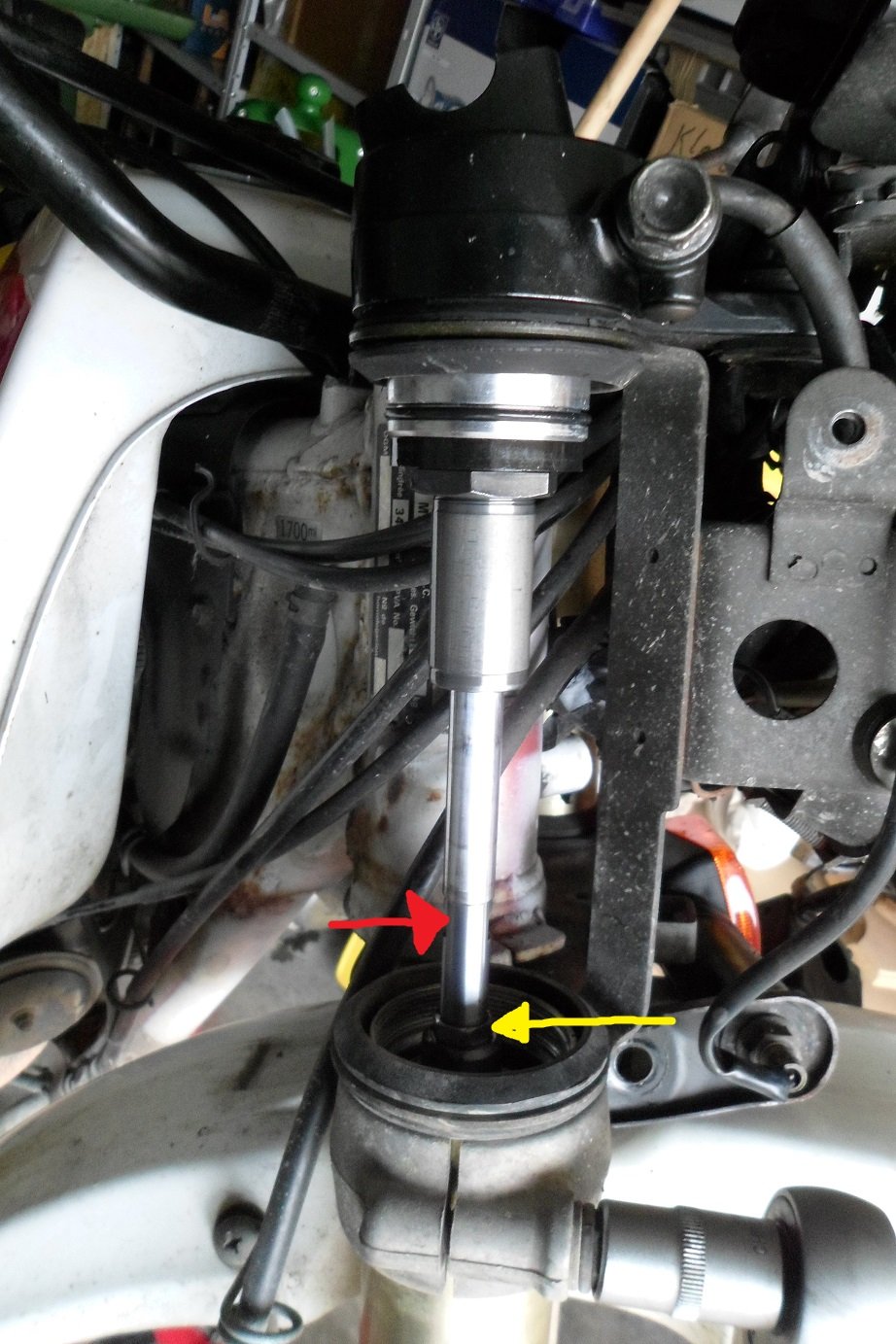 Noch besitze ich keine Dr, aber ich stehe vor einer Kaufentscheidung. Der Verkäufer wirkt seriös. Er hat wohl die Hydraulikschrauben an den Gabelenden geöffnet und somit wurde getan, was man nicht tun sollte: Luft in der Hydraulik. Es geht auch nur um die Gabel. Das Federbein wurde wohl nicht angefasst.