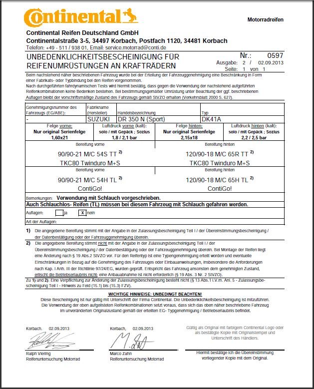 Ich war so frei, und hab die Reifenfreigabe auch mal in die Galerie (Rubrik "Gutachten") gestellt.