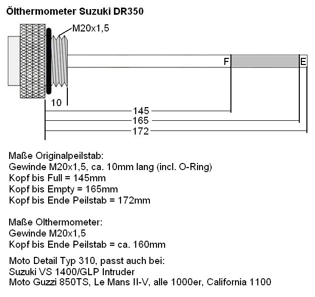 habe meine Suzuki DR350 relativ neu gekauft. Anstelle des originalen Ölmessstabes ist einer mit Temperaturanzeige verbaut. Auf diesem fehlt leider eine entsprechende Markierung.