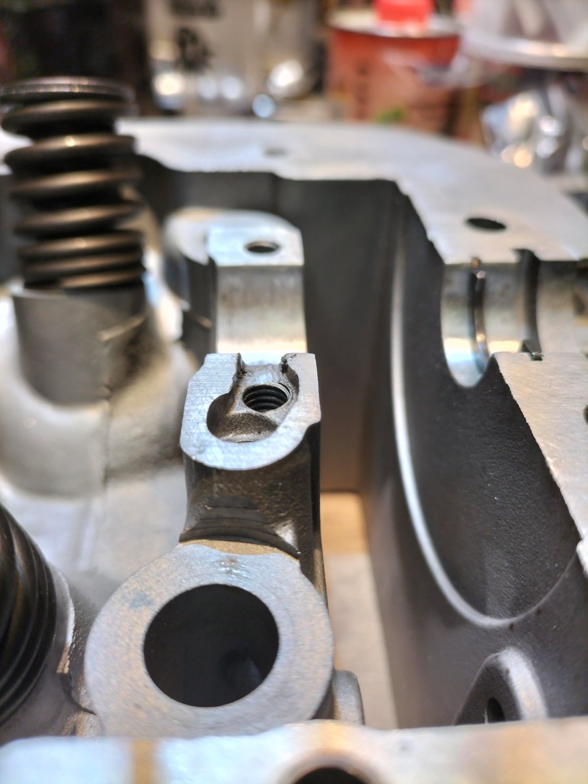am Zylinderkopf sind Stehbolzen - vorn und hinten / Unterseite - die waren aller Erinnerung nach als der Kopf eingeschickt wurde noch an jenem dran - als der Kopf "einbaufertig" geliefert wurde waren die Stehbolzen nicht mehr vorhanden, was natürlich erst beim Zusammenbau auffiel, deshalb: Kopf wieder ab, notwendige Länge "Stehbolzen" ermittelt, gütige (8.8) Schrauben herausgesucht, Kopf abgesägt, Gewinde nachgearbeitet. Alles unnotwendige Zusatzarbeit die zu gegebener Stunde ziemlich aufhielten und nervten.