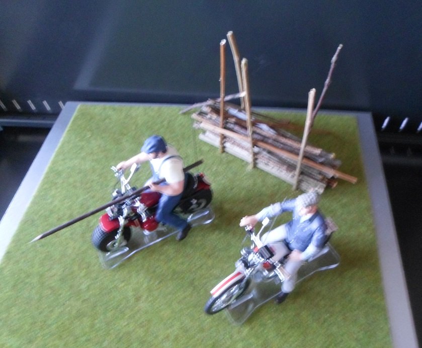 Deshalb bleibt es vorerst so wie es ist - mit dem Stapel Rundhölzer im Hintergrund - von dem sich ja T. Hill im Film im Vorbeifahren die "Lanze"für das "Duell" geschnappt hat.