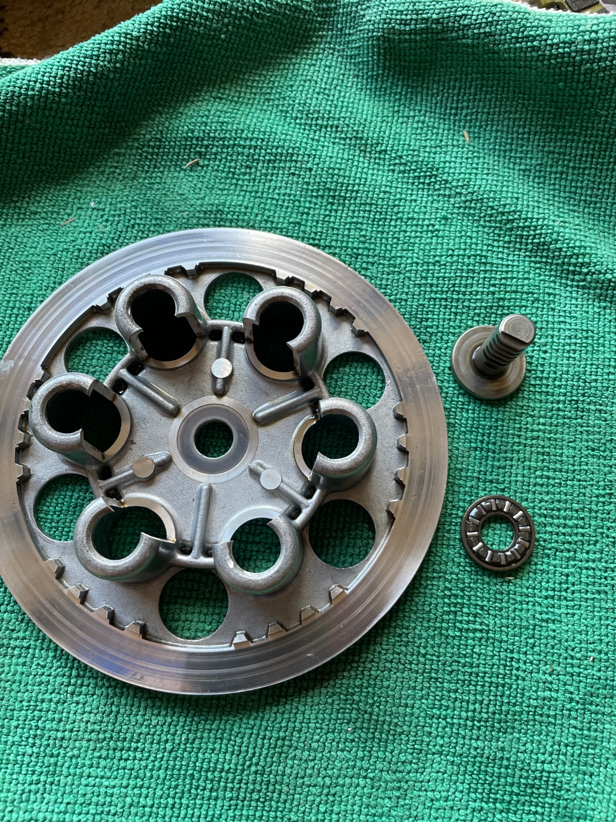 Optische Inspektion des Ausrücklagers ist auch ohne Befund, genau wie der Korb selbst (keine Rattermarken), Reibscheiben und Stahlscheiben gut (Verzug Stahlscheiben prüfe ich morgen auf der Richtplatte)
