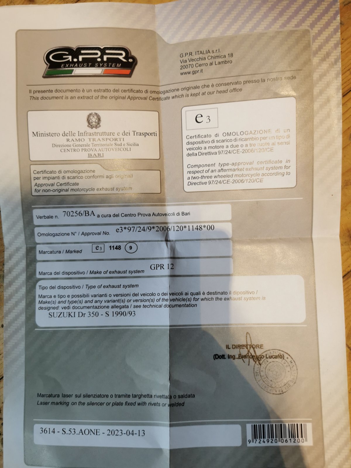 Re: Suche Beiblatt für GPR Endschalldämpfer für Suzuki DR350