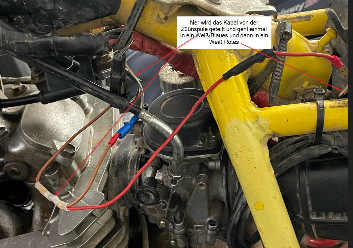 das weiß/rote Kabel müsste Drehzahlmesser sein und geht direkt in die CDI ( in den viererstecker ) .