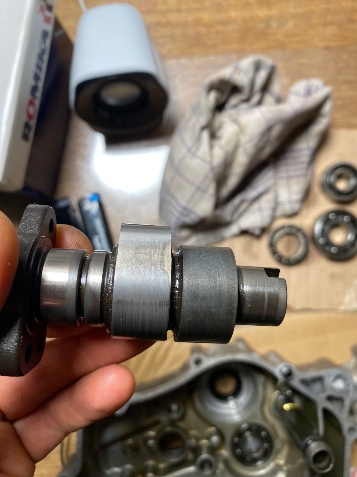 Dann mal zum Schluss noch die Lagerflächen. Ich habe sie mit einem Lappen geputzt. Mit der Fingernagelmethode kann ich kein ,,Hängenbleiben,, feststellen. Meine Idee bei dem ,,Fitmachen,, der Maschine ist folgende. Der eine Kipphebel wird ersetzt(auf cmsl gibt es die noch) und ich würde eine Nockenwelle aus dem Enduroshop.de kaufen. Hat jemand Erfahrung mit solchen Nachbauten. 130€ ist ein überraschender Preis für so ein Teil.