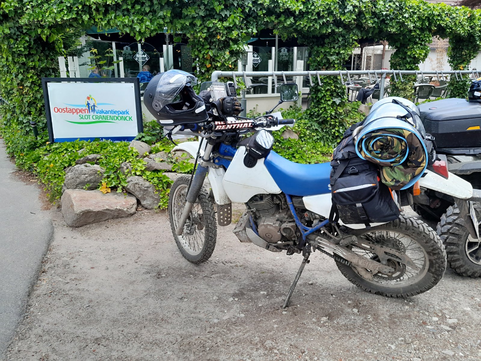 Mir kam es so vor als wäre es ok, wenn die Taschen auf den grauen Aufliegeflächen, aber so bald Straps oder andere Teile aufliegen, das Plastik schmilzt, weil die Hitze nirgendwo hin kann? Ich hab extra Werkzeug und eine Flasche Wasser auf die Auspuffseite gepackt, in der Hoffnung, dass die viel Wärme aufnehmen können.
