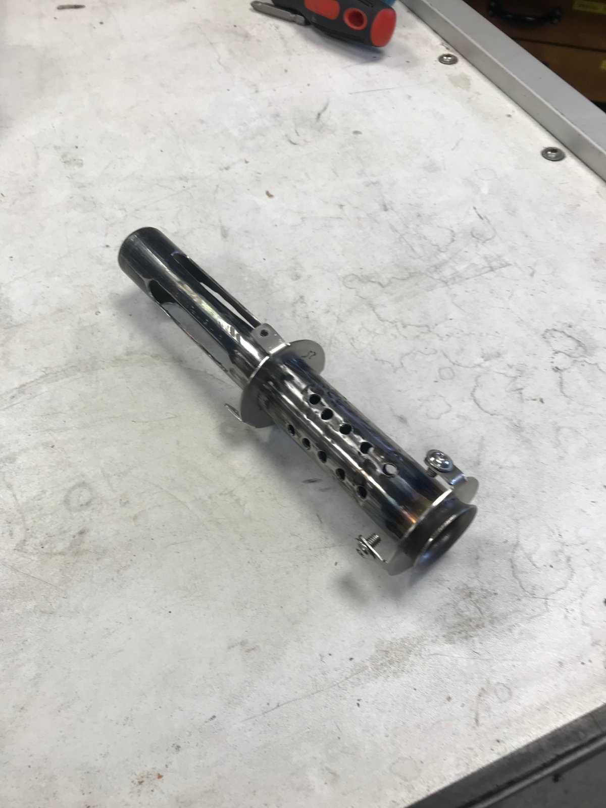 Jetzt läuft sie wie die Sau, das hatte ich gar nicht so erwartet. 130 km/h nach Navi. Mit dem GPR Auspuff von Herrn Hessler war sie mir aber zu laut. Den Titanium- Schalldämpfer einer GSXR750 anoperiert... noch lauter. "Schnell" einen dB- Eater gebastelt- jetzt gehts.