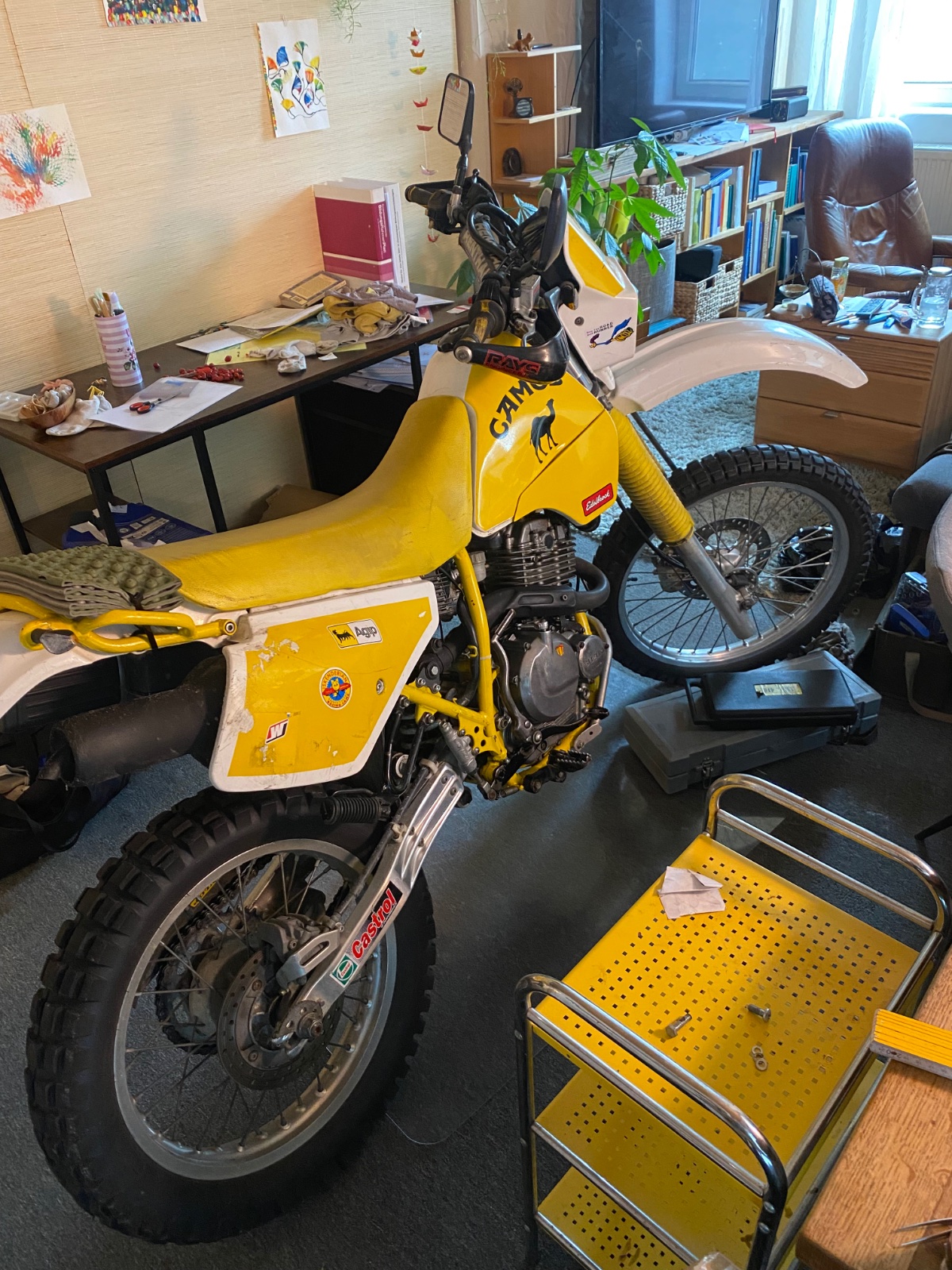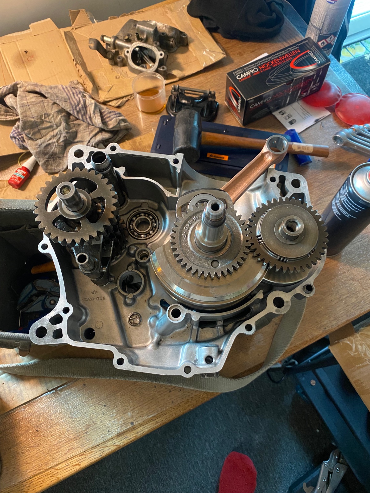 Wie manche schon mitbekommen haben, habe ich vor kurzem öfter Gebrauch von dem Tech Support machen müssen. Ich habe nun die Dr in einer zwei Tages Aktion(In meinem Wohnzimmer) zusammengebaut. Meine Werkzeugausstattung war eher im Afrika Style aber ich habe alles wieder zusammenbekommen. Gestern Abend sprang sie dann nach dem 5 ten Kick an. Es hört sich erstmal alles ganz ok an. Ob auch alles hält kann ich noch nicht sagen(ich habe die Kurbelwelle mit einem Gummihammer reinhauen müssen). Ich möchte die Gelegenheit nutzen und mich bei allen ganz herzlich für die Hilfe bedanken. So ein Forum ist einfach Gold wert und wahrscheinlich(hoffentlich) nicht durch eine KI ersetzbar.