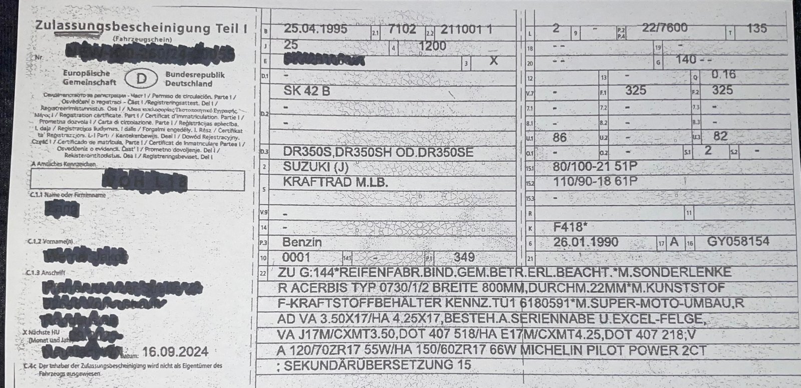 hab auch ein Supermoto Umbau, mit Kompletten Eintragungen.