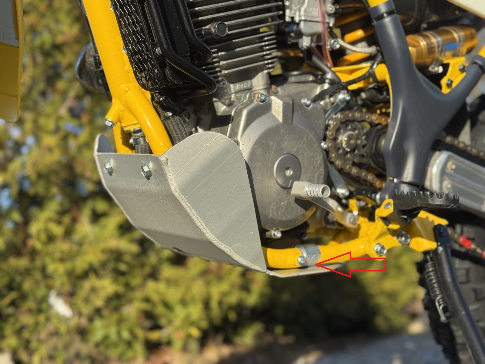 Leider steht sie ein paar Millimeter über den Motorschutz hinaus. Das ist natürlich nicht optimal und ich suche eine Lösung dafür.